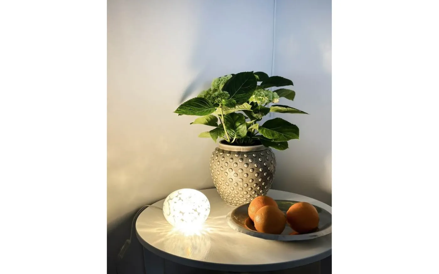 Globus bordslampa i vit prickigt glas med ljuskälla inuti glasbollen som ger ett dekorativt och bekvämt ljus. Max 25W E14 päronlampa, ingår ej. Sladd med mellanströmbrytare och stickpropp.