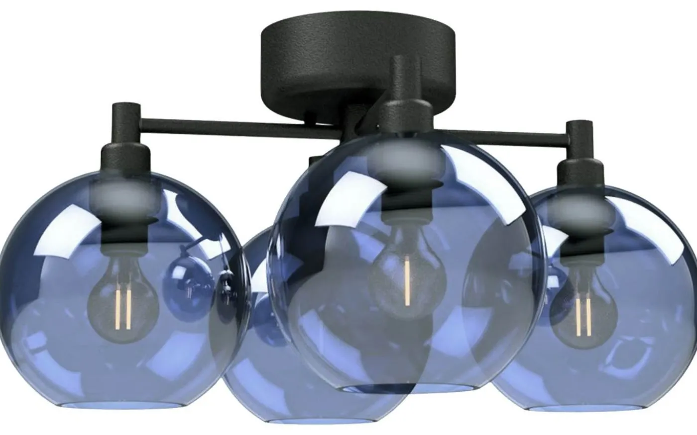 Vackra Gloria från Belid är en plafond med stomme i svart metall och fyra glaskupor i blåfärgat glas. Med sin tillverkning i Varberg tillverkas alla produkter från Belid av högsta, svenska kvalitet. Och Gloria är inget undantag!