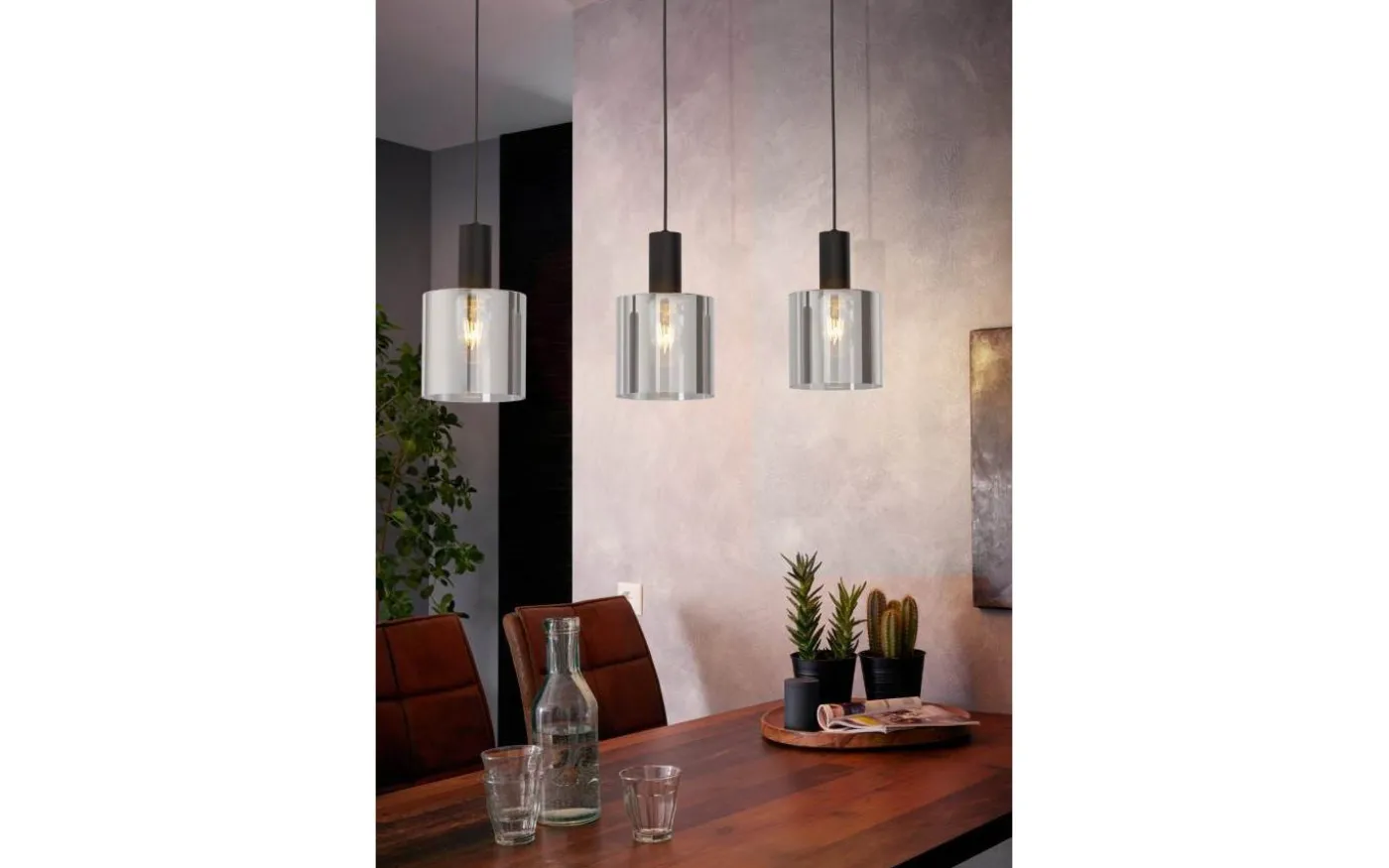 GOROSIBA taklampa har tre runda lampskärmar gjorda av rökt svart belagt glas och ett svart metallfäste. Pendellampan smälter sömlöst med moderna och skandinaviska interiörer och ger stilfull belysning för alla interiörer, oavsett om det är i vardagsrummet eller över ett långbord i matsalen.