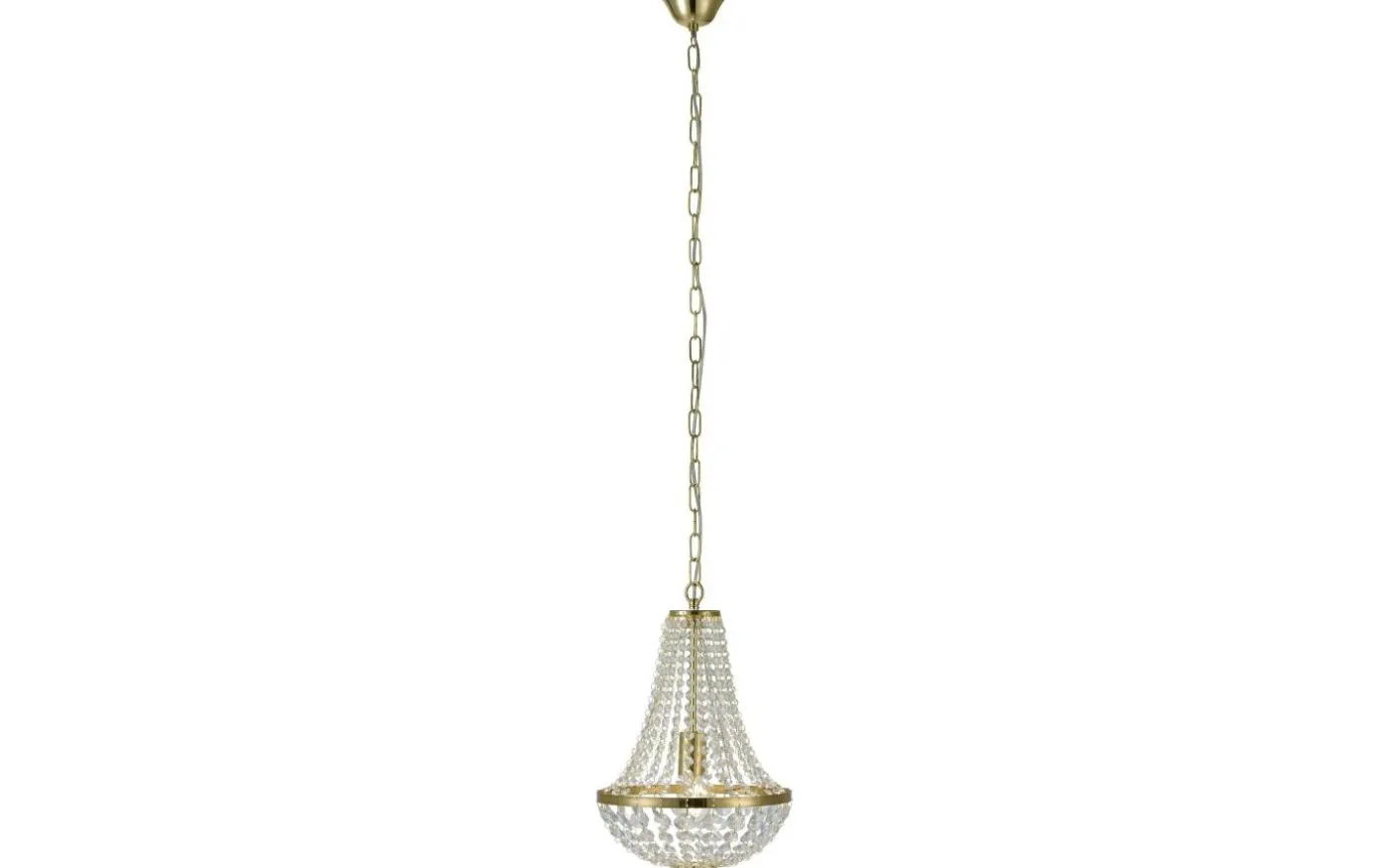 Gränsö kristallkrona ingår i en serie och finns i flera olika varianter. Denna finns i två färger, välj mellan blank, härlig krom eller snyggt, borstad mässing.