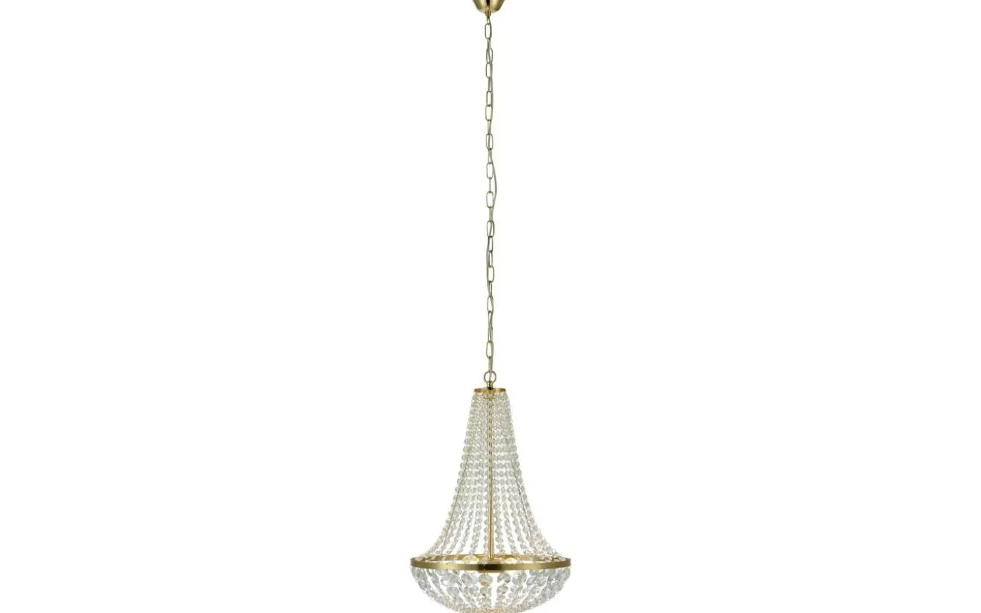 Kristallkrona Gränsö från välkända Markslöjd. Denna kristallplafond har maskinskurna prismor i klart glas. Kedjan är 1,5m med takkåpa för krokupphäng.