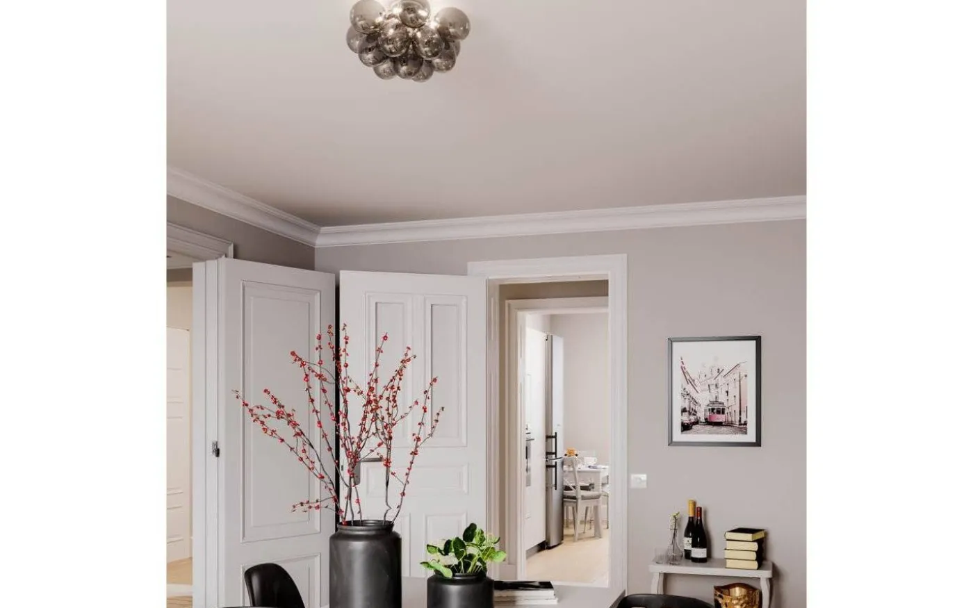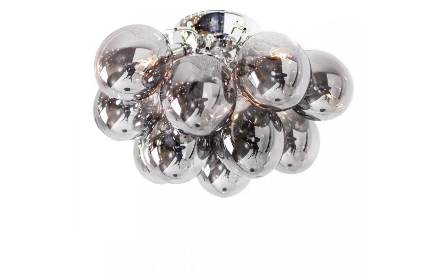 Gross från välkända By Rydéns är en snygg plafond som passar i de flesta utrymmen. Plafondens upphäng i blank krom kombinerat med 12st munblåsta, rökfärgade glaskulor ger lampan ett exklusivt och trendigt intryck. De skira glaskulorna släpper genom ett fantastiskt ljusflöde och lampans storlek gör den lättplacerad. Till plafonden behöver du 3st G9 ljuskällor, dessa säljes separat – se passande förslag under tillbehör.