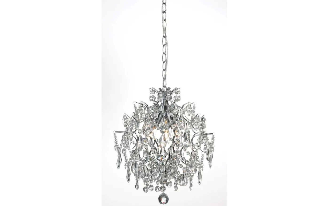 Kristallkrona Häringe från välkända Markslöjd. Denna kristallplafond har maskinskurna prismor i klart glas. Kedjan är 1,5m med takkåpa för krokupphänge.