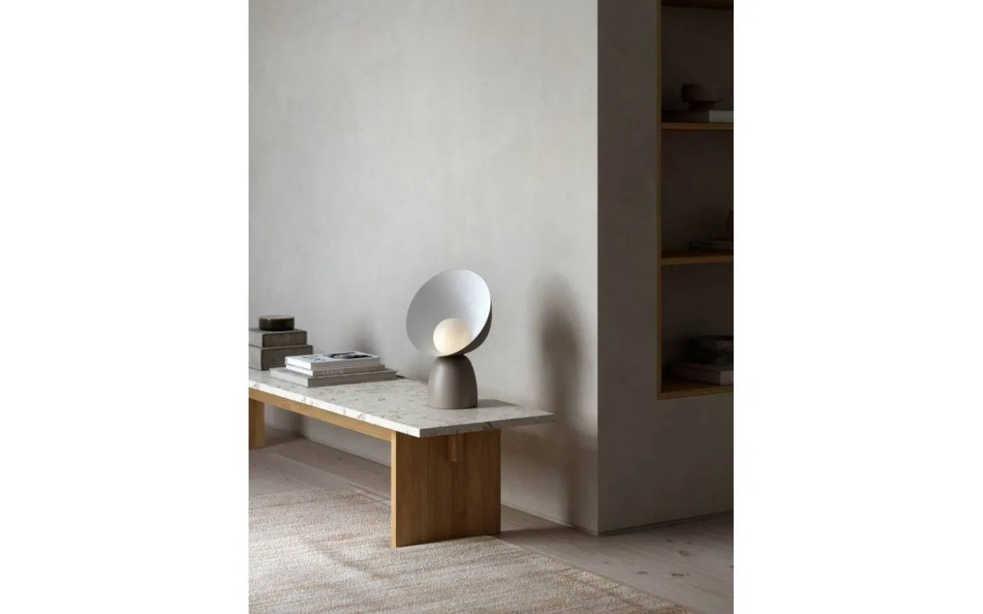 Hello av den danska designern Charlotte Høncke har ett lekfullt och välkomnande formspråk och en klassisk, organisk siluett. Den stora skärmen omfamnar vackert den opalvita glaskupolen och kan till och med vridas hela vägen runt för en lekfull blandning mellan direkt och indirekt ljus.