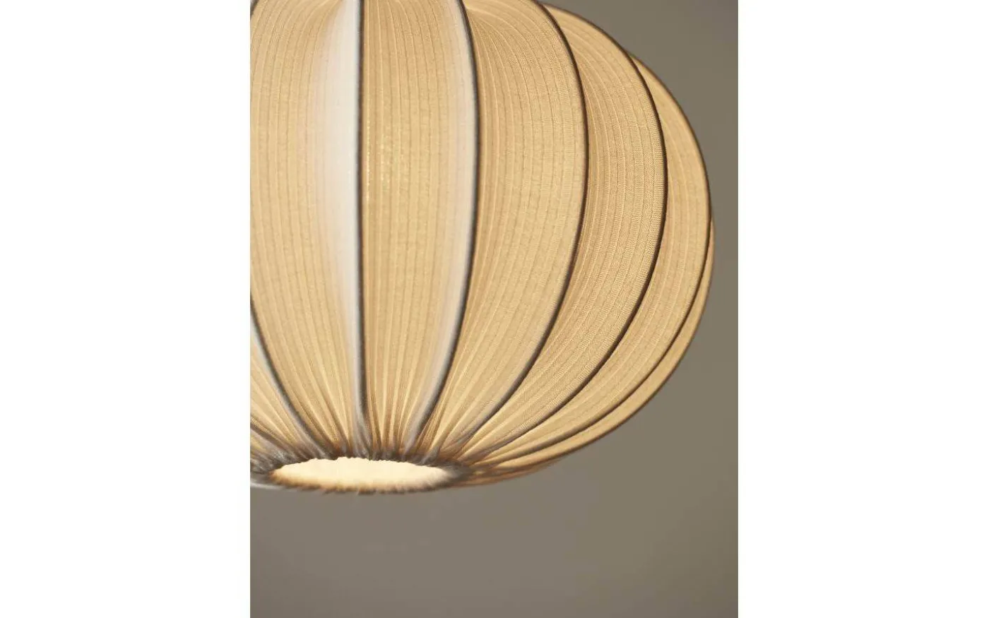 Hilma takskärm från PR Home är tillverkad i linnetyg. i ett ribbat jerseytyg. Den ribbstickade strukturen ger ett vackert sken när lampan är tänd. Takskärmen har ett E27-ringfäste som sitter 6cm ner från skärmens ovankant.