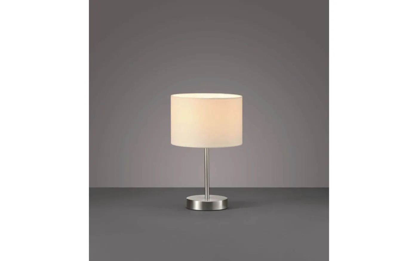 Med bordslampan HOTEL kan du skickligt skapa eleganta accenter i ditt vardagsrum. Oavsett om den är modern eller klassisk – bordslampan anpassar sig till ditt vardagsrum och kommer till sin rätt överallt. Den är ett dekorativt komplement till mysiga sammankomster eller spelkvällar med vänner. Med en diameter på 20 cm och en höjd på 32 cm är lampan ett blickfång i alla rum. Den vita tygskärmen skapar en härlig och behaglig atmosfär och en behaglig ljusfördelning. För modern och pålitlig belysning rekommenderas en LED-lampa. Den erbjuder hög ljuskvalitet, är mångsidig och övertygar med jämn belysning. Dess långa livslängd och låga värmeutveckling gör den till det perfekta valet för en mängd olika användningsområden. Ljuskälla: exklusivt 1x E14 · max. 40W. Extra information: Kabelbrytare, IP20, Lampa(or) ingår ej