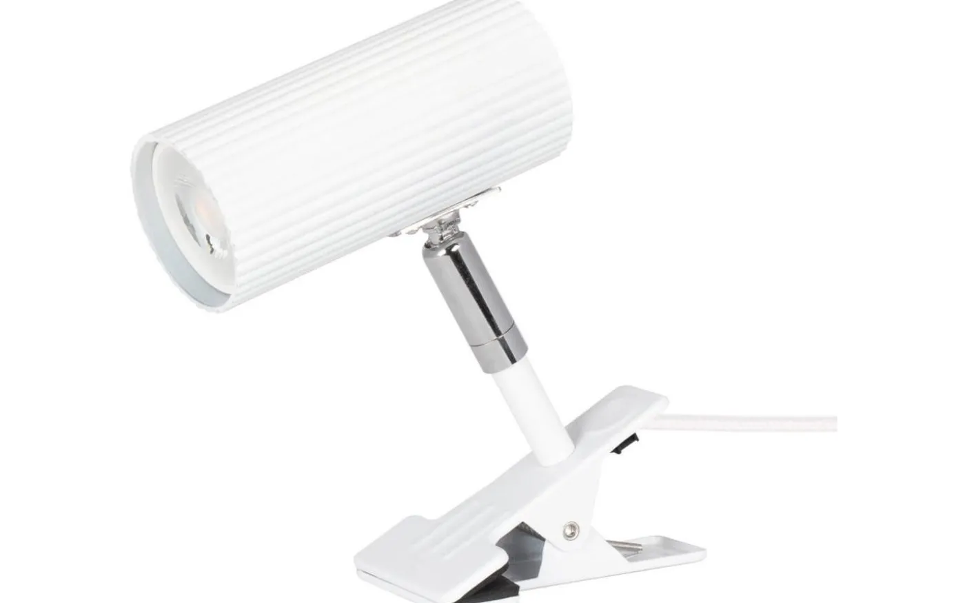 Hubble klämlampa levereras komplett med en 2m lång vit anslutningskabel i textil med strömbrytare och stickkontakt för vägguttag.