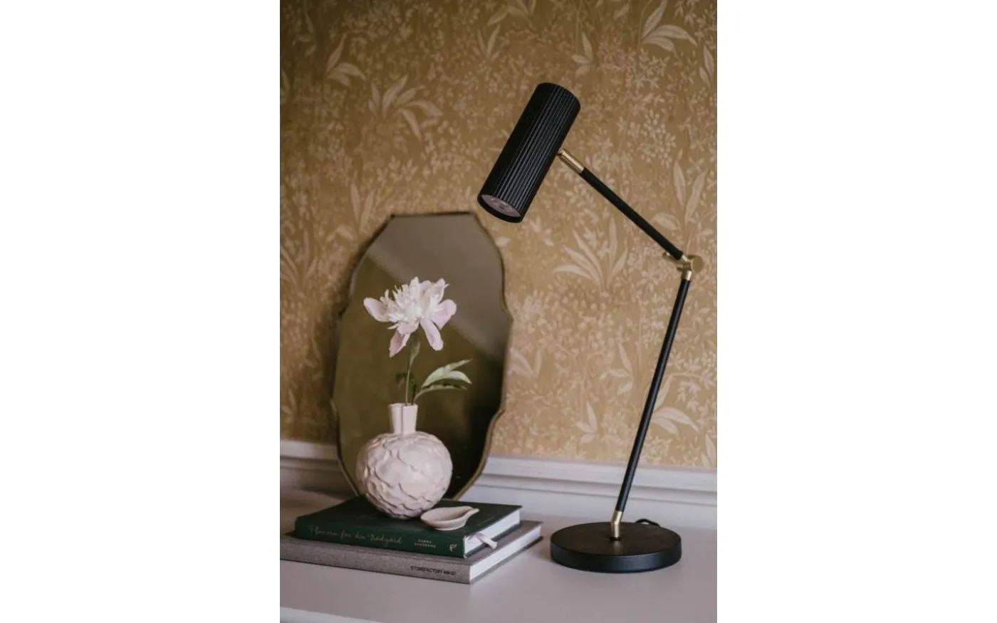 Denna läslampa är gjord i metall med en mattsvart finish med detaljer i mässing. Det smala lamphuvudet har en räfflad finish som ger lampan karaktär och en extra stilren look. Hubble har 2 meter lång sladd med strömbrytare och stickkontakt för vägguttag.