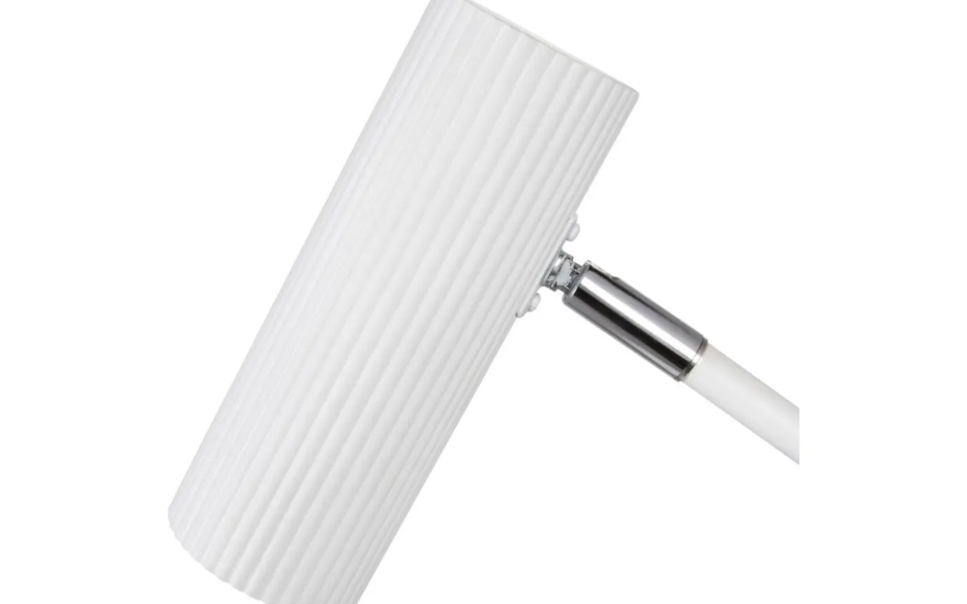 Denna läslampa är gjord i metall med vit finish med detaljer i blank krom. Det smala lamphuvudet har en räfflad finish som ger lampan karaktär och en extra stilren look. Hubble har 2 meter lång sladd med strömbrytare och stickkontakt för vägguttag.