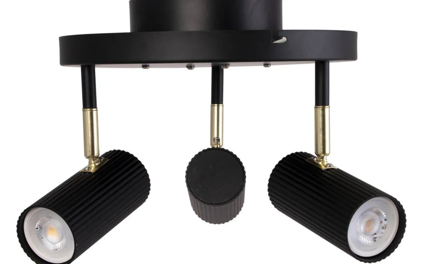 Hubble takspotlight från Globen Lighting är en modern rund takspotlight med tubformade och räfflade skärmar i svart metall med mässingsfärgade detaljer. Takspotlighten har tre vinklingsbara lamphuvuden så att du enkelt kan rikta ljuset efter önskemål och behöv.