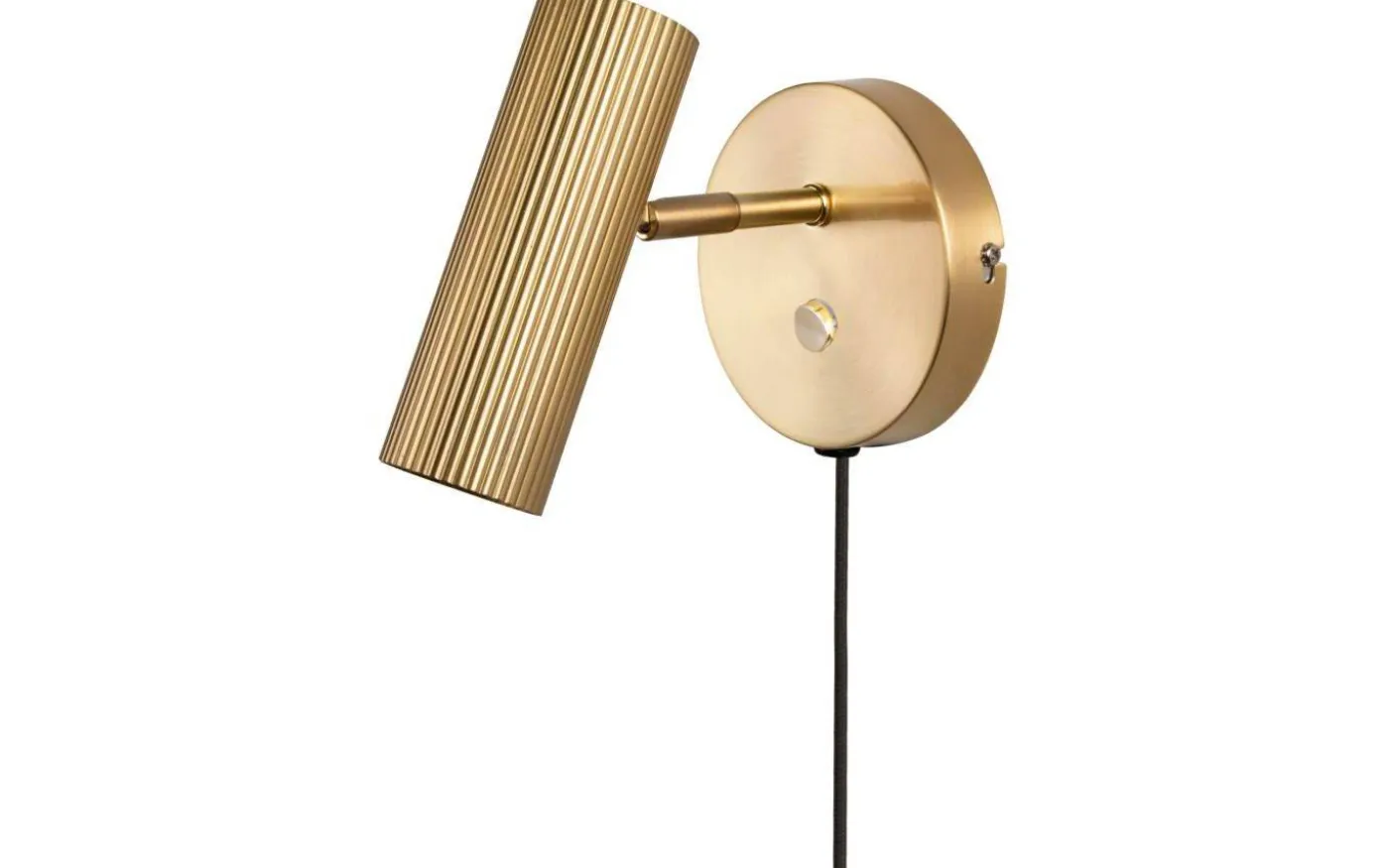 Stilrena vägglampan Hubble, från välkända Globen Lighting, är en läslampa i metall med en borstad mässingsfärgad finish. Det smala lamphuvudet, med en räfflad look, är riktbart vilket gör att denna vägglampa passar perfekt som läslampa intill sängen.