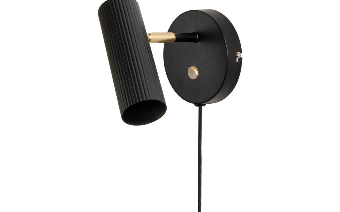 Stilrena vägglampan Hubble, från välkända Globen Lighting, är en läslampa i metall med en mattsvart finish och detaljer i mässing. Det smala lamphuvudet, med en räfflad look, är riktbart vilket gör att denna vägglampa passar perfekt som läslampa intill sängen.