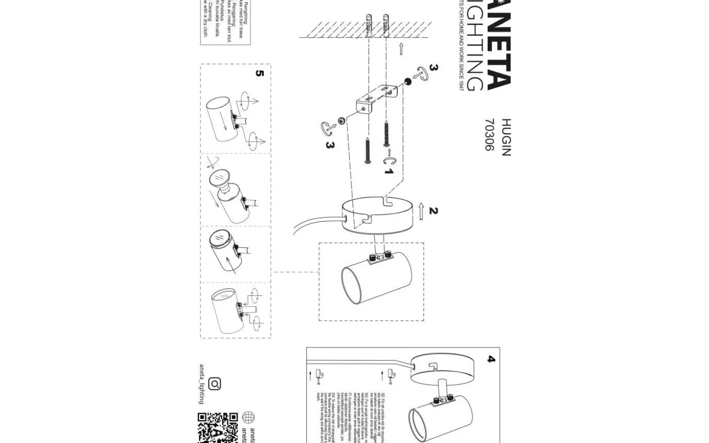 Hugin vägglampa från Aneta är en enkelt och stilren vägglampa med justerbart lamphuvud som gör det enkelt att rikta ljuset dit du vill.