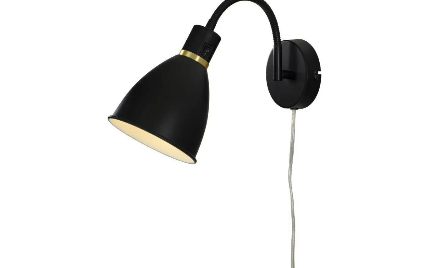 Idre vägglampa har en klassisk design i svartlackerad metall med en dekorativ ring i matt mässing. Lampan har en böjbar arm och strömbrytaren sitter lättåtkomligt på lamphuvudet vilket gör Idre till en perfekt sänglampa. Idre vägglampa kan även kombineras med andra lampor i Idre-familjen.