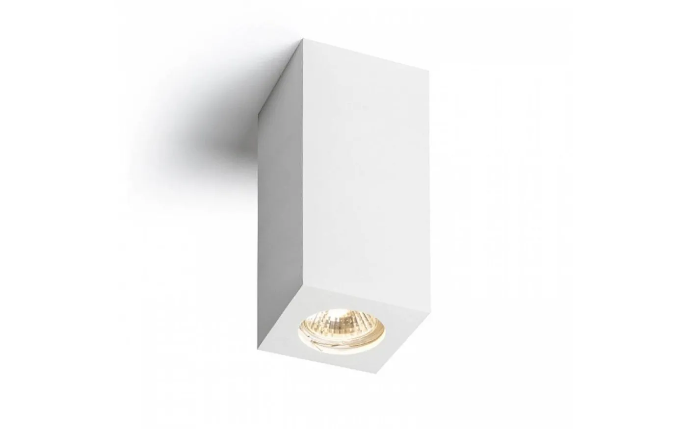 Kantig taklampa av gips med GU10 sockel. Går att måla med vanlig väggfärg.
