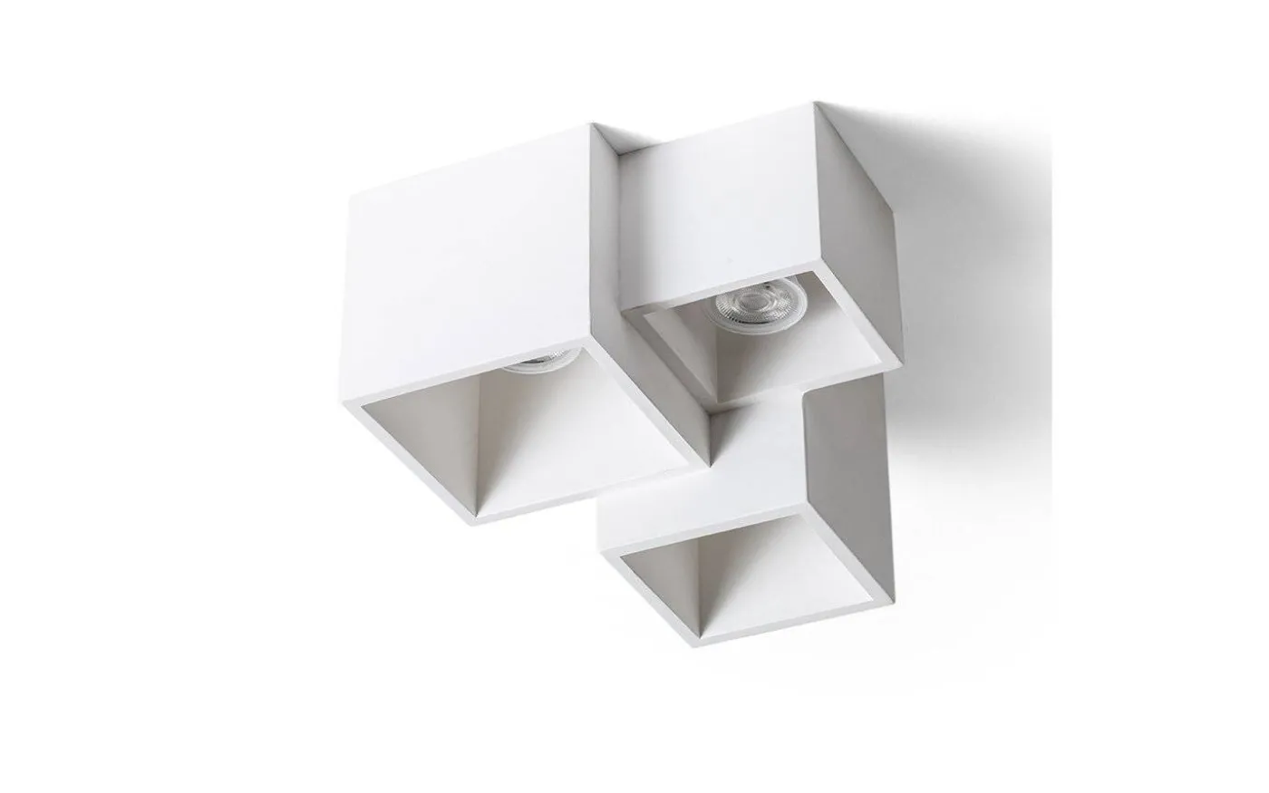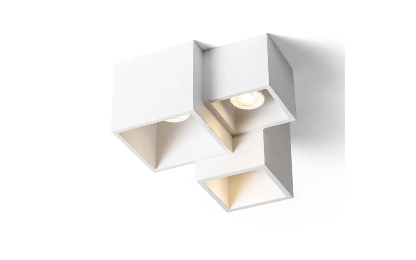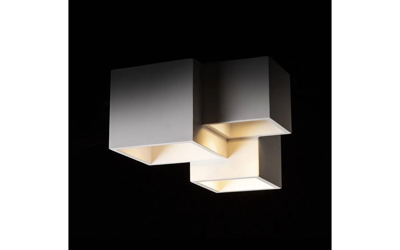 Jack taklampa från Rendl Light Studio är tillverkad i gips med 3st kvadratiska pelare i olika höjder för en mer lekfull design. Lampan går att måla med helt vanlig väggfärg.