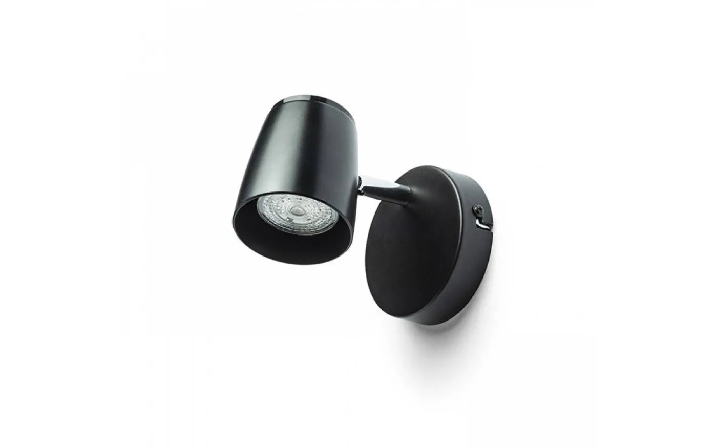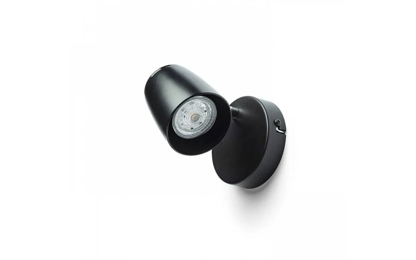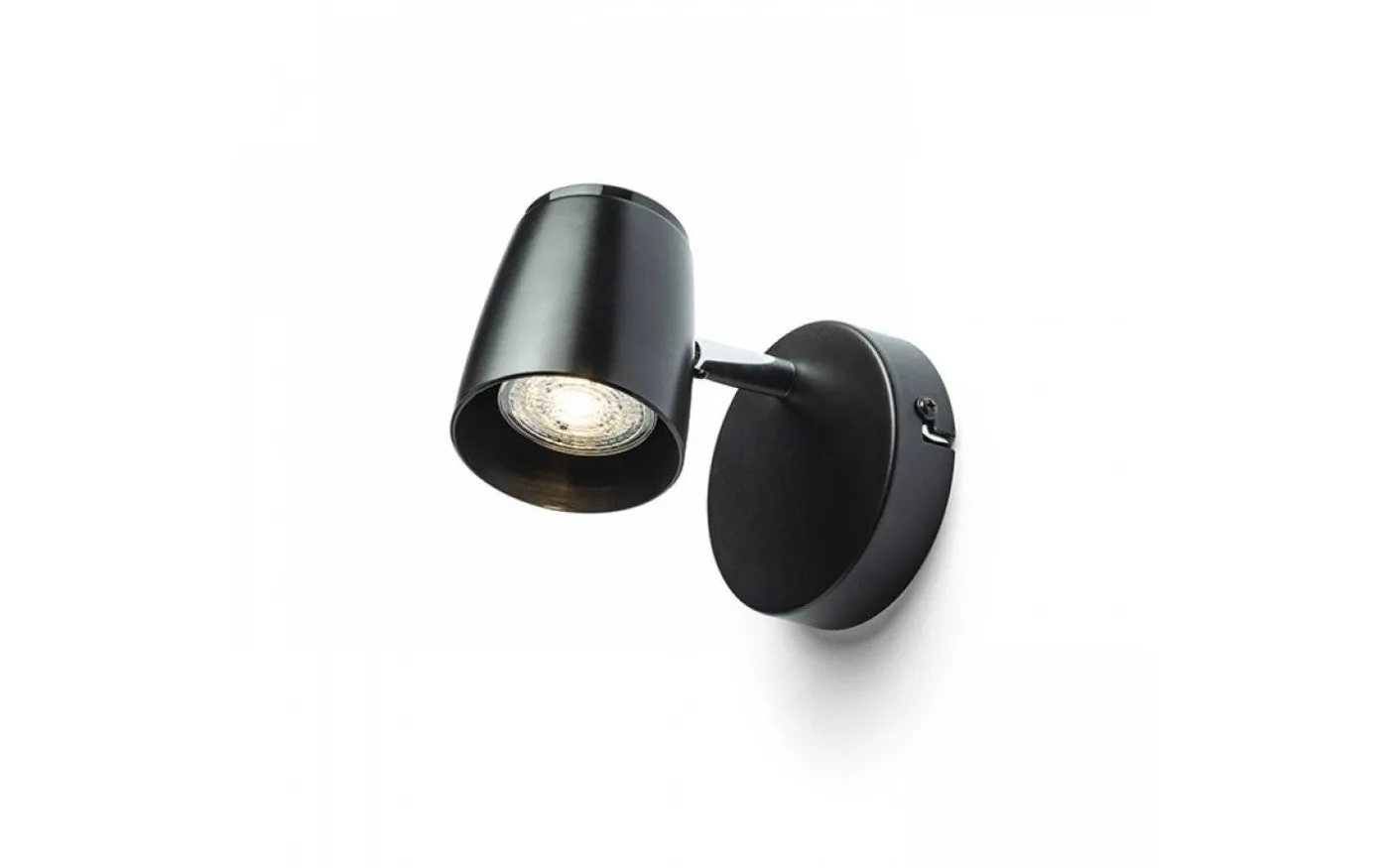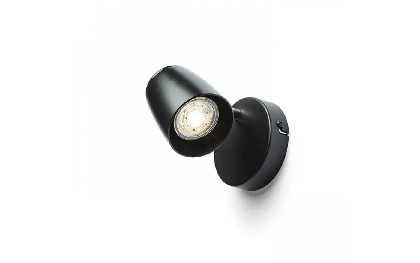 Denna högkvalitativa vägglampa är tillverkad av svart plast med ett 90° riktbart huvud. Avsedd för fast installation med 230V och skruvas upp.
