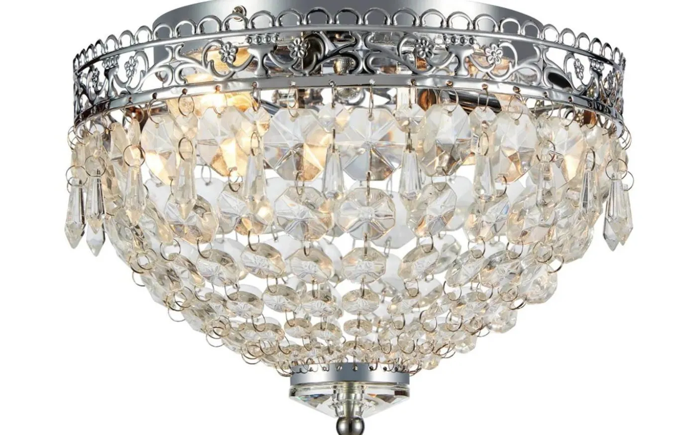 Joline plafond har en stomme av kromad metall med vackra, maskinskurna prismor. Lampan har en diameter på 28 cm.