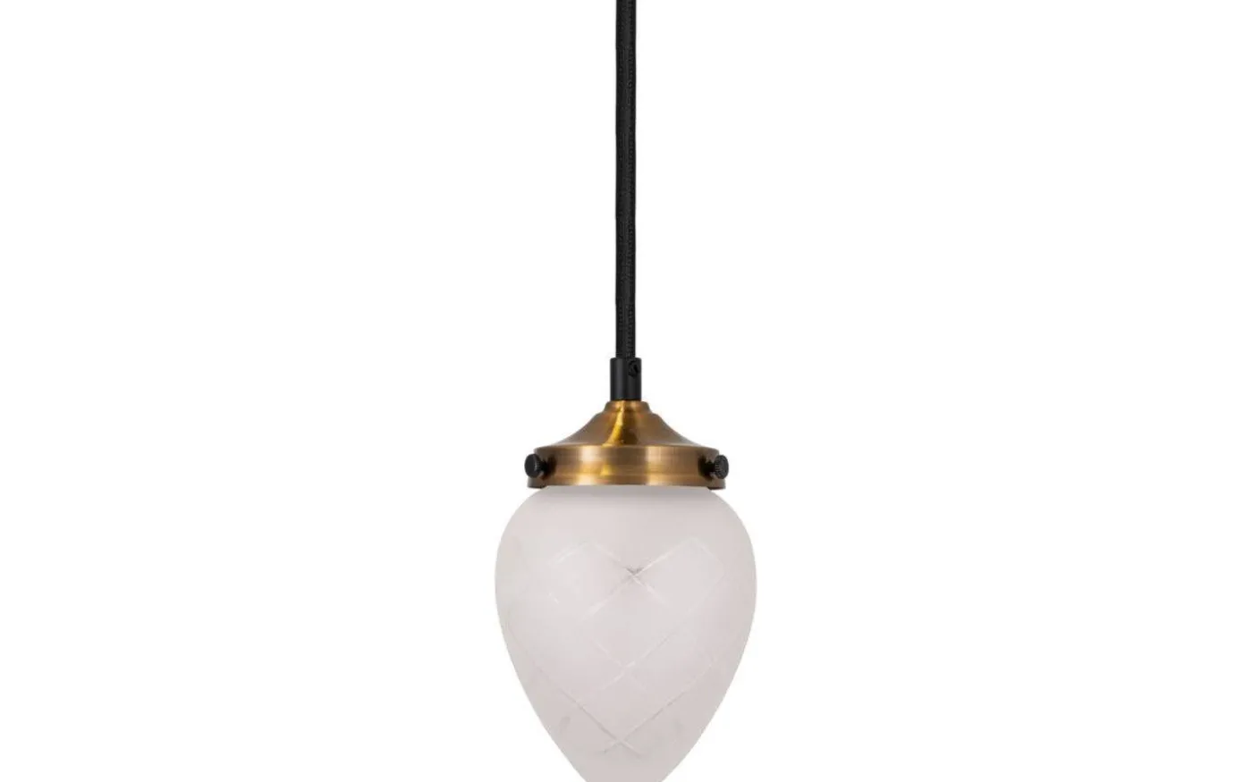 Vackra fönsterlampan Juni, från Globen Lighting, är en pendel med stomme i mässingsfärgad metall med en lite mörkade, slipad finish. Glaskupan är dropformad och gjord i frostat glas med vackert rutmönster. En tidlös design som passar perfekt i det klassiska hemmet!