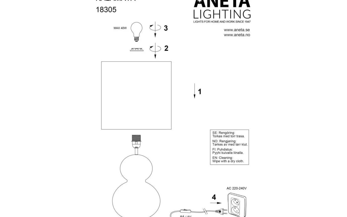 Kalamata från Aneta är en enkel och stilfull bordslampa i keramik med textilskärm som släpper igenom ett behagligt ljussken.