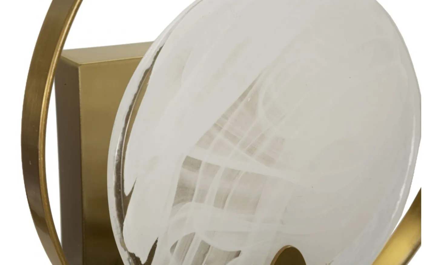 Vägglampa i gyllene metall och glas med rökt effekt med en enkel och fängslande geometrisk design.