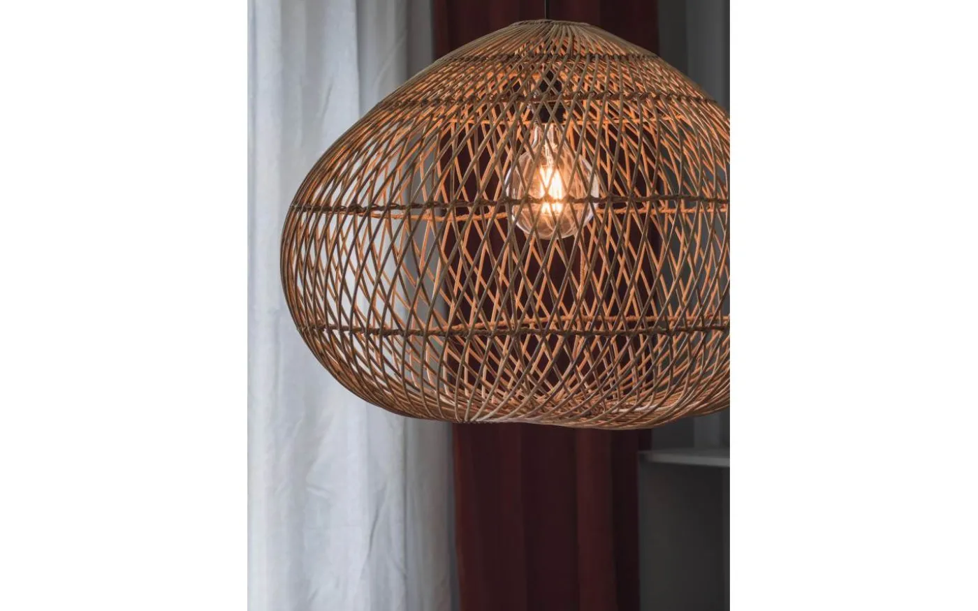 Vackra Karen taklampa från välkända PR Home är en handgjord taklampa av flätad naturrotting som ger ett vackert bildspel.