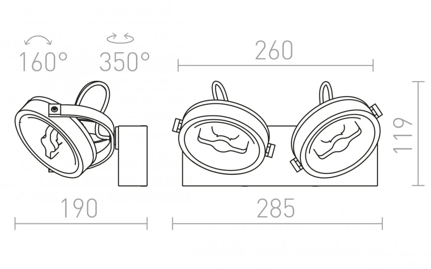 Riktbara vägg- eller taklampor med integrerade LED-ljuskällor. TRIAC dimning.