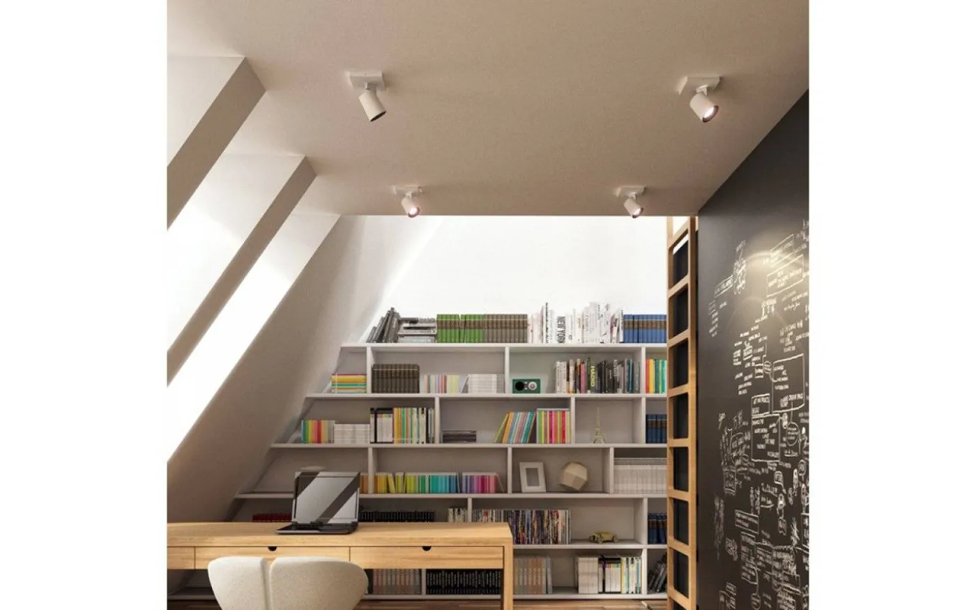 Armaturen är ytmonterad och tillverkad av vit aluminium med en 90° riktbar ljuspunkt. Installeras smidigt med 230V.