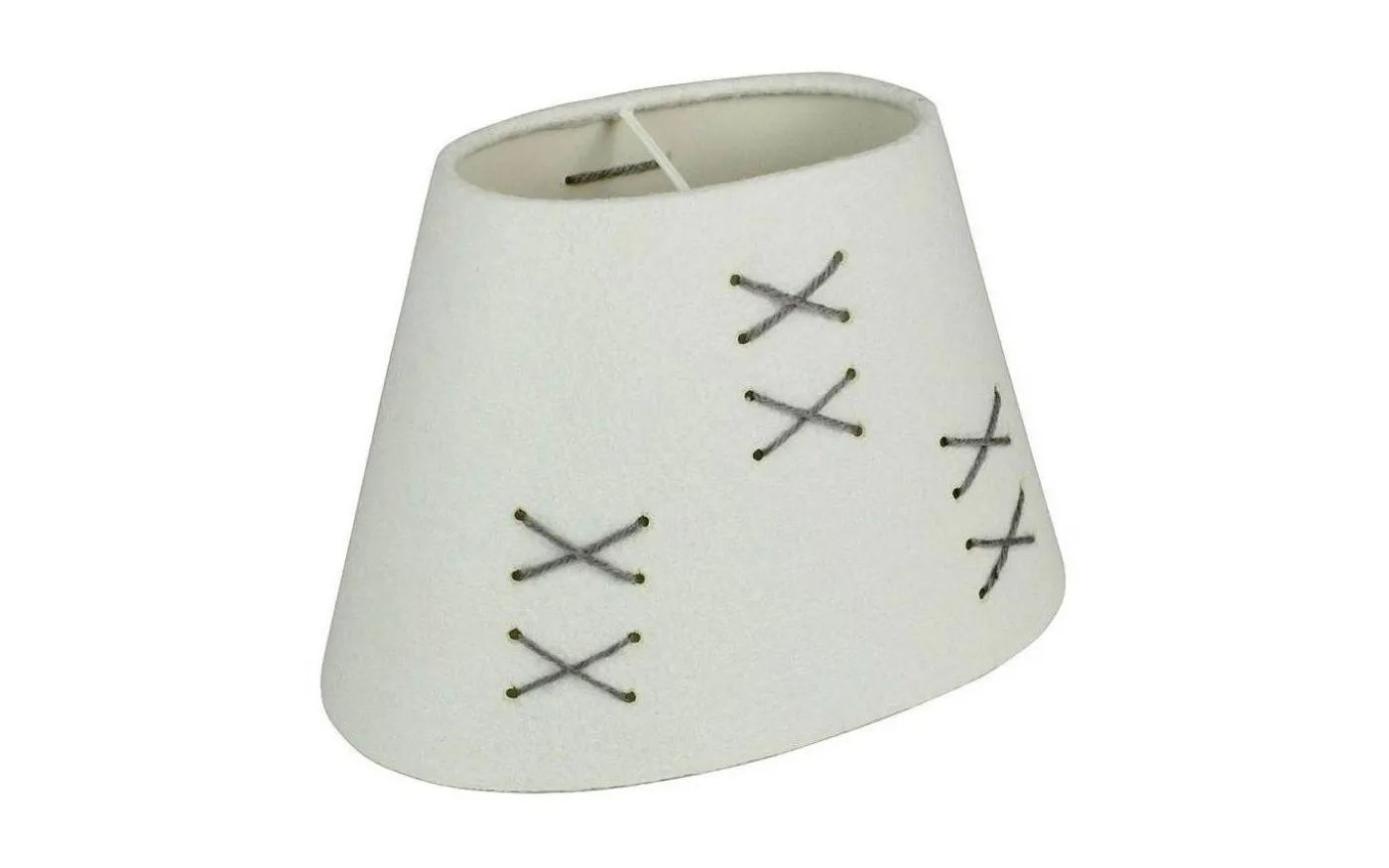 Kors lampskärm från Oriva är en oval lampskärm i filt med dekorativa kryss runt skärmen. Lampskärmen har klofäste som fäst på en klotformad ljuskälla.