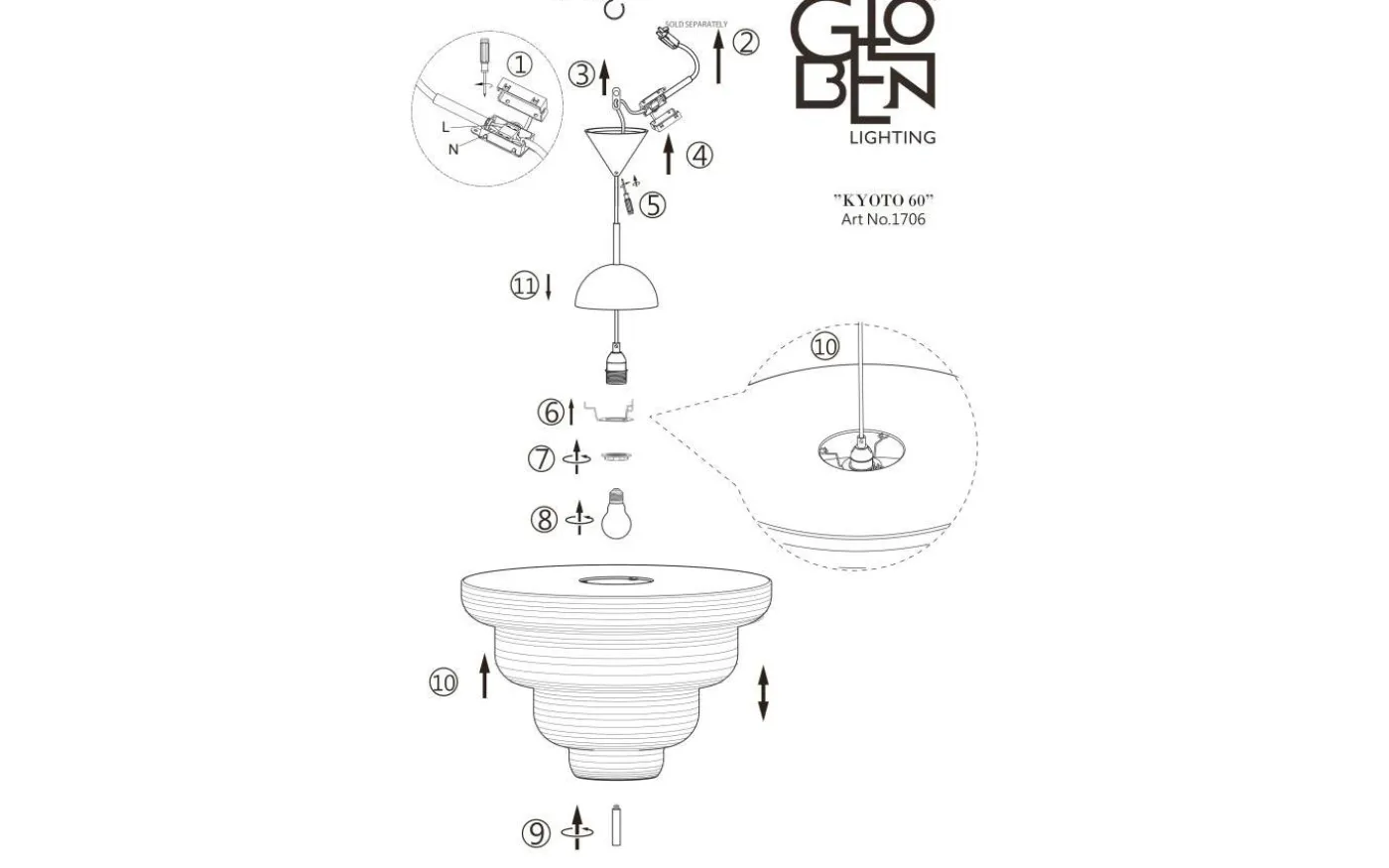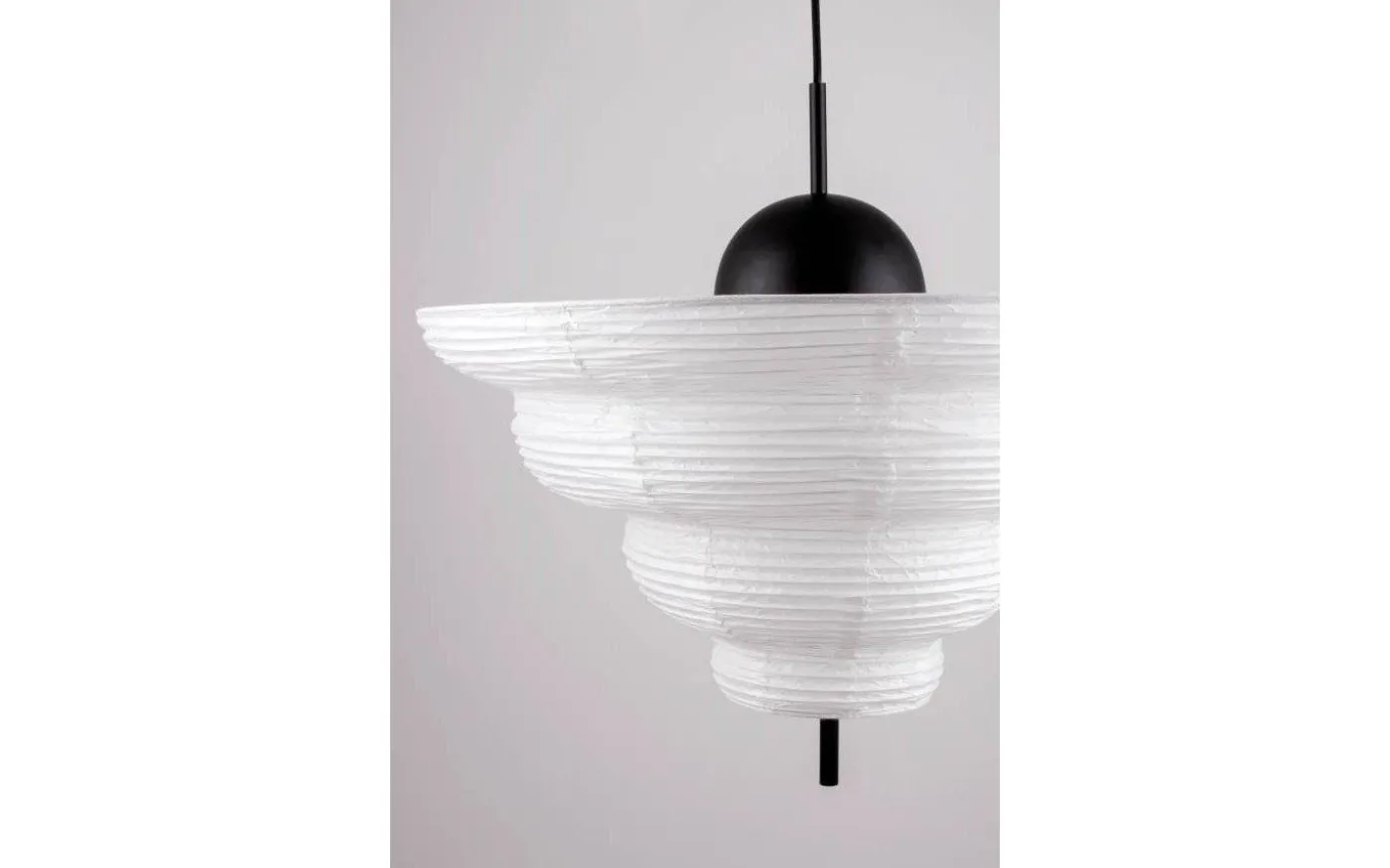 Med inspiration från Asien och den traditionella rislampan skapades taklampan Kyoto. Det tunna vita rispappret skapar ett behagligt ljus och i nederkant hänger en dekorativ svart metallpinne. Kyoto har en 120 cm lång svart kabel samt en takkopp i svart plast.