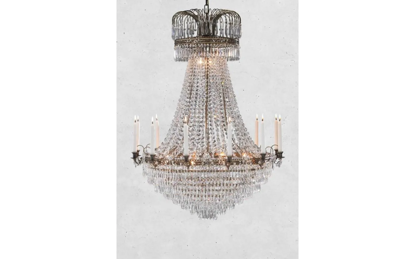 En majestätisk och elegant kristallkrona. Hög kristallkvalité (brilliant kvalité) och robust stomme i antiklackad metall.