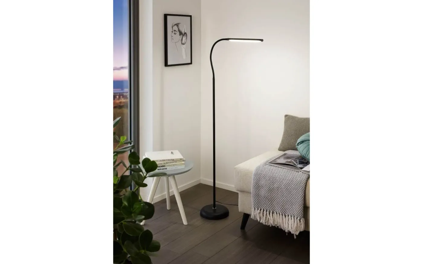 LAROA LED-golvlampan är gjord av svart plast och har ett justerbart huvud. De integrerade lysdioderna producerar ett neutralt vitt ljus, och produkten slås enkelt på och av och växlas mellan fyra ljusstyrkanivåer genom att röra vid ”touch me”-zonen på huvudet. Den minimalistiska golvlampan smälter samman med moderna inredningsstilar och ger den perfekta belysningen i arbetsrummet eller alla utrymmen där bra belysning behövs.