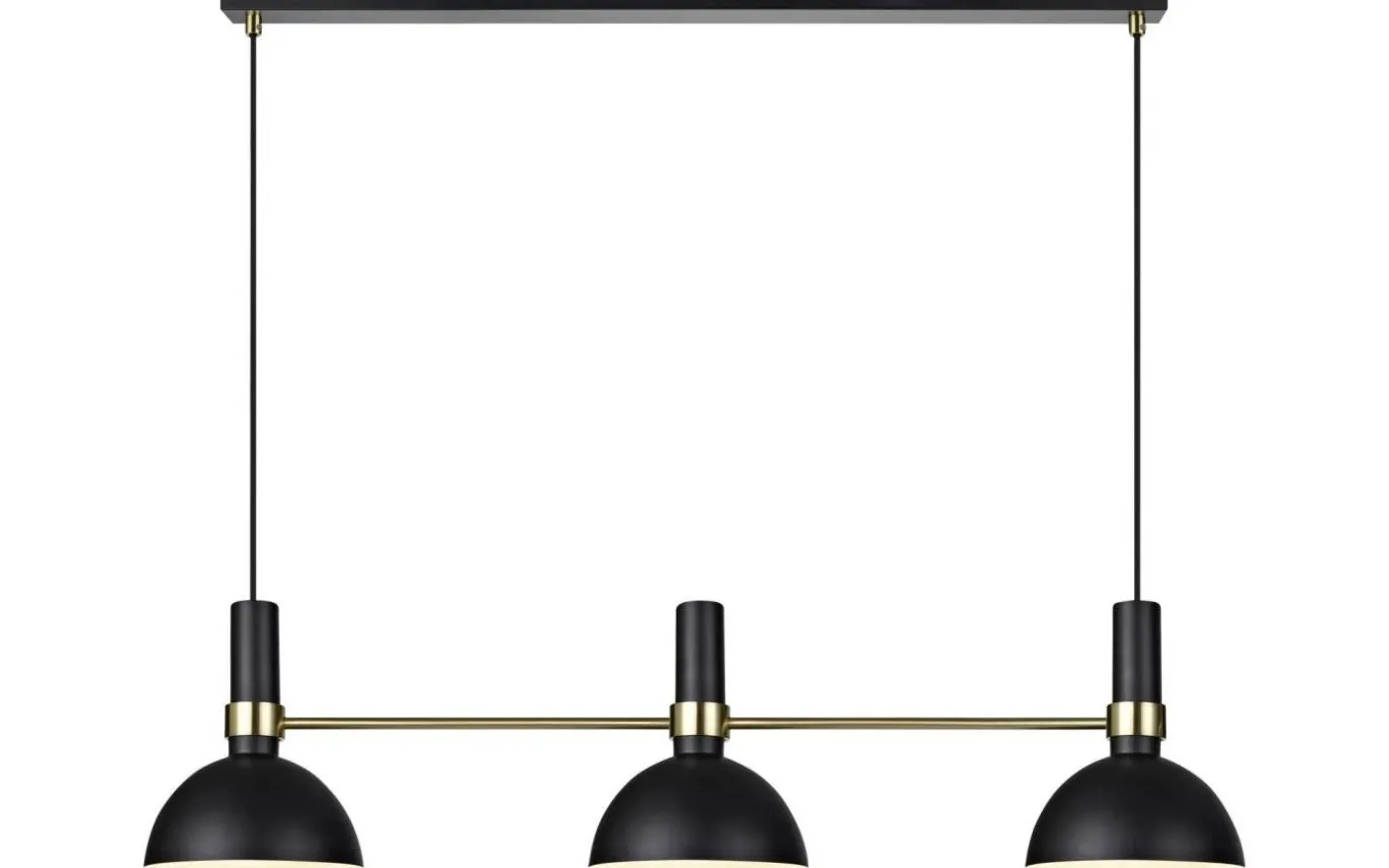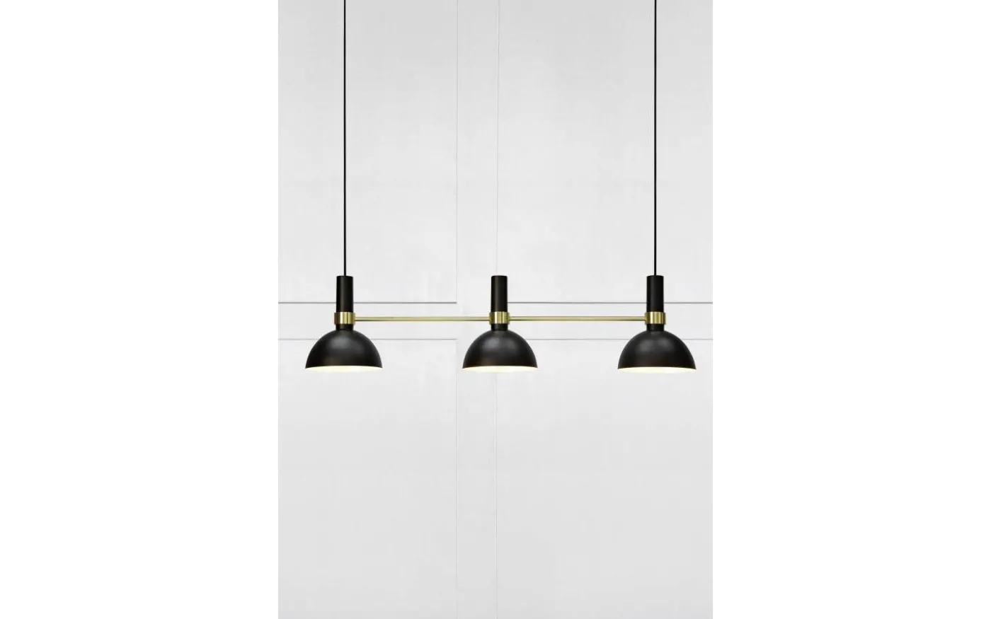 Larry taklampa är designad av Monika Mulder för välkända varumärket Markslöjd. Stommen är gjord av svartlackerad metall med detaljer i borstad mässing. Detta är en avlång modell av Larry, med tre lamphuvud, som gör att den passar utmärkt över matbordet eller över köksön. Varje lampskärm har en diameter på 19 cm.