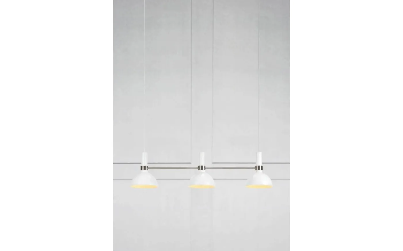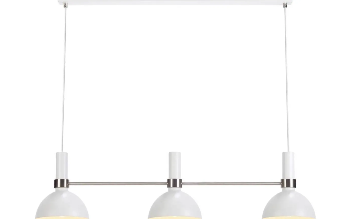 Larry taklampa är designad av Monika Mulder för välkända varumärket Markslöjd. Stommen är gjord av vitlackerad metall med detaljer i stål. Detta är en avlång modell av Larry, med tre lamphuvud, som gör att den passar utmärkt över matbordet eller över köksön. Varje lampskärm har en diameter på 19 cm.