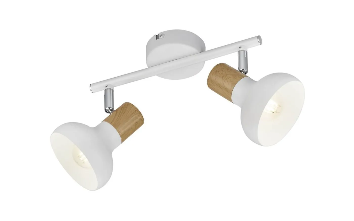 Skapa lugnande accenter med spotlights från LATIKA-serien och fördjupa ditt vardagsrum i en mysig atmosfär. Oavsett om den används ensam eller i kombination, som huvudsaklig ljuskälla eller som riktad accentbelysning för specifika områden, kan spotlighten med två ljuskällor användas på en mängd olika sätt och ger ditt rum en varm känsla tack vare tränyanserna. Kombinationen av vit matt metall och metall med träliknande utseende ger ditt hem en mysig karaktär som enkelt kan kombineras med befintliga interiörer. För modern och pålitlig belysning rekommenderas en LED-lampa. Den erbjuder hög ljuskvalitet, är mångsidig och övertygar med jämn belysning. Dess långa livslängd och låga värmeutveckling gör den till det perfekta valet för en mängd olika användningsområden. Ljuskälla: exklusivt 2x E14 · max. 10W. Extra information: IP20, Lampa(or) ingår ej, Vägg- och takmontering