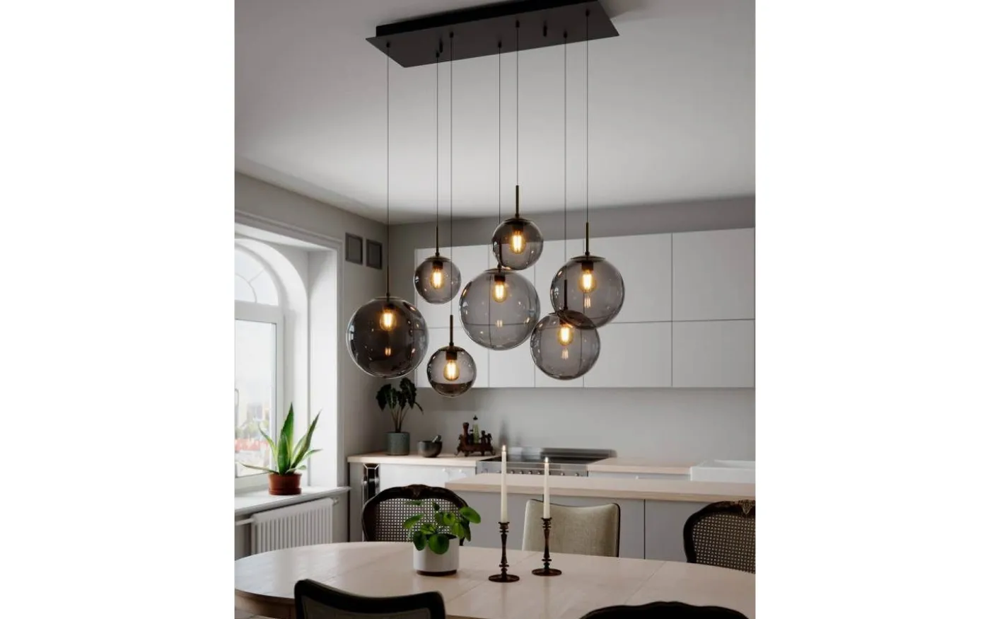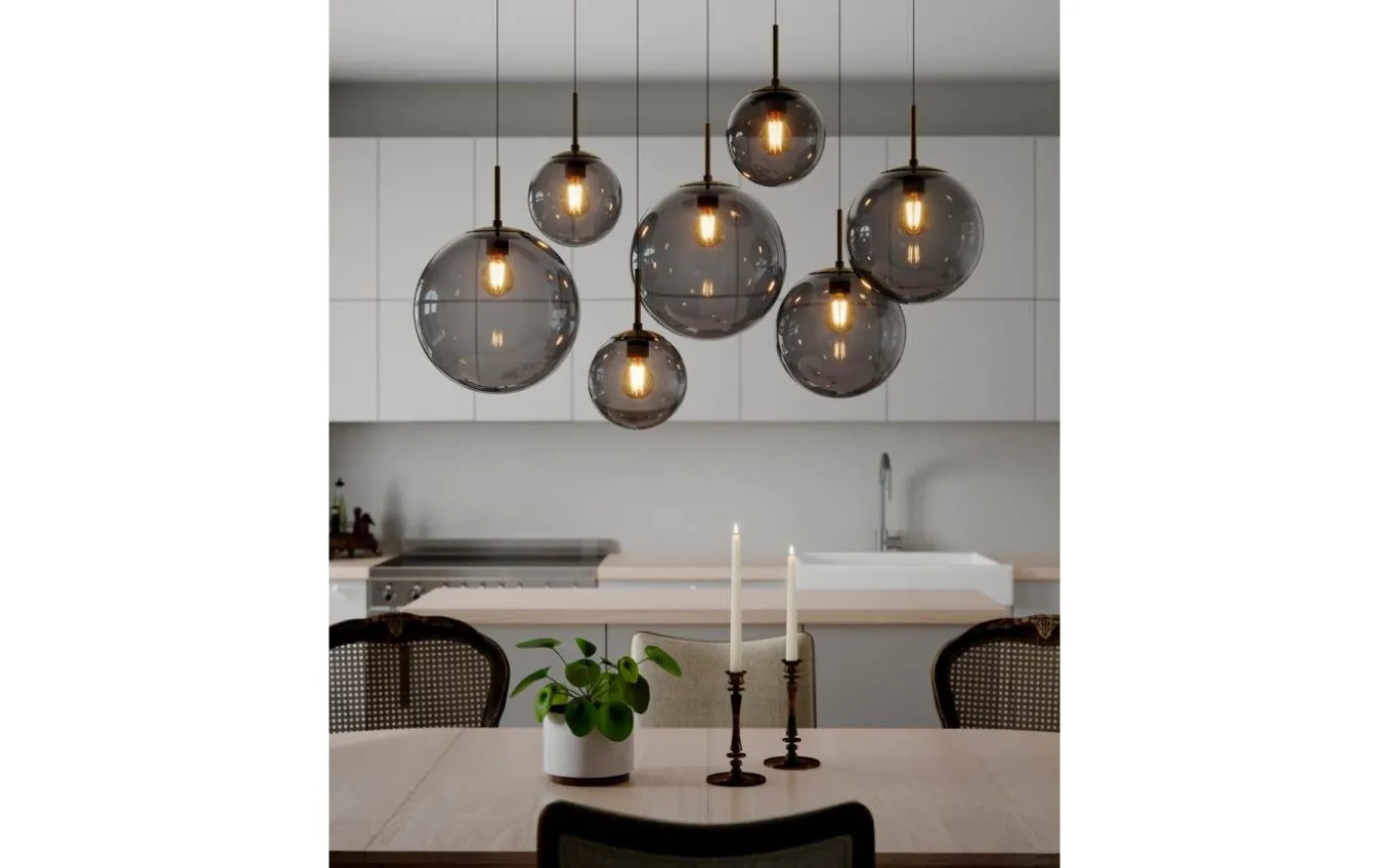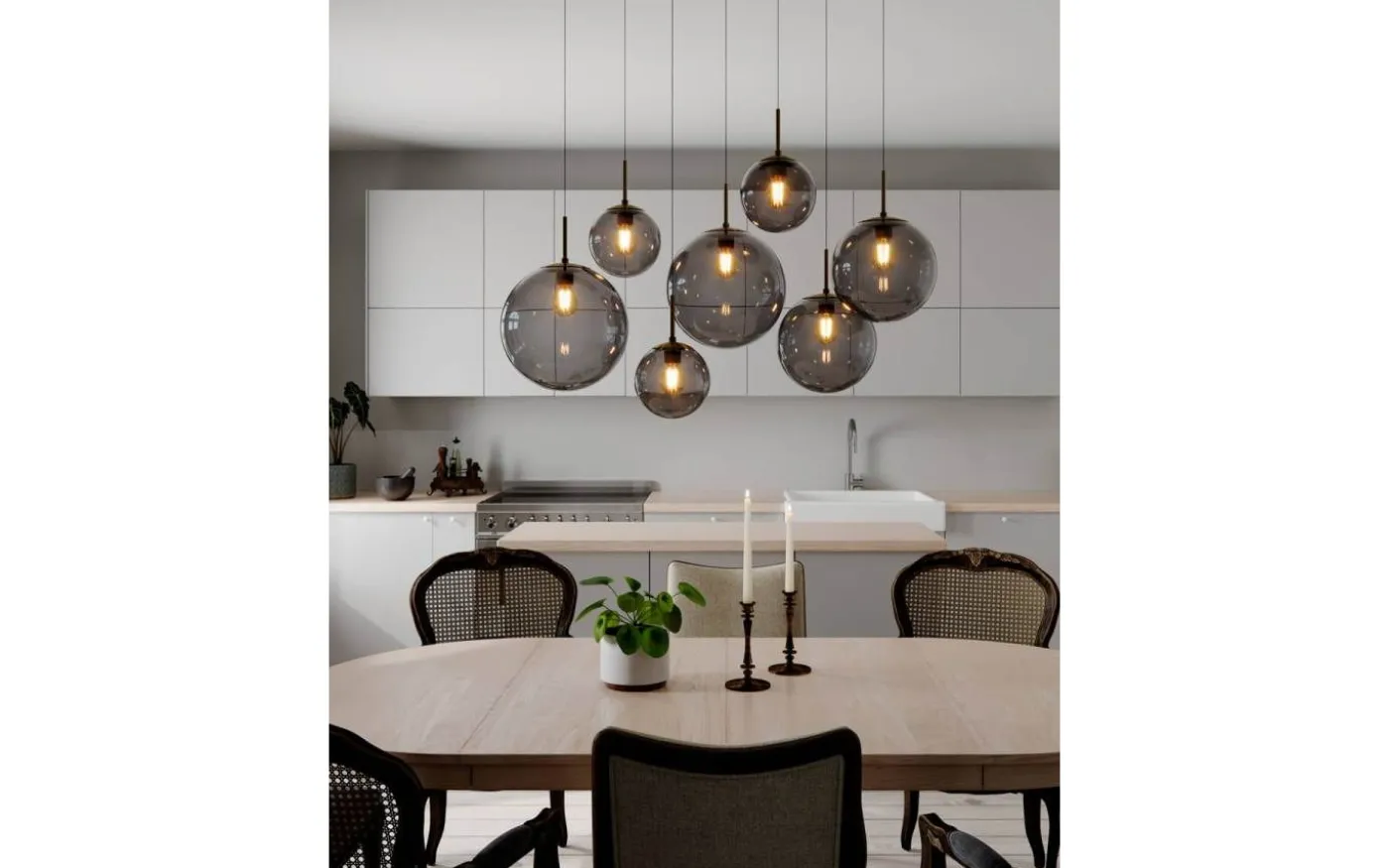 Upptäck taklampan Laura, en imponerande kombination av modern design och klassisk elegans. Tillverkad av matt svart metall med stilrena mässingsdetaljer, utstrålar denna lampa en tidlös charm. Den är försedd med sju glaskupor i ljusgrått i olika storlekar, vilka enkelt monteras för att skapa en harmonisk ljuseffekt. De svarta reglerbara textilkablarna ger inte bara en praktisk funktion utan bidrar också till lampans sofistikerade estetik. Laura är särskilt lämplig för större rum där den tar plats och agerar som en central dekorativ pjäs. Dess exklusiva utseende och robusta konstruktion gör den till ett utmärkt val för dem som värdesätter både stil och funktion. Med Laura får du inte bara en ljuskälla utan också en designstatement som förhöjer hela rummets atmosfär. Idealisk för både moderna och traditionella inredningsstilar, erbjuder denna taklampa en perfekt balans mellan form och funktion, vilket gör den till ett oumbärligt tillägg till ditt hem. Längden på takfästet är 86 cm.