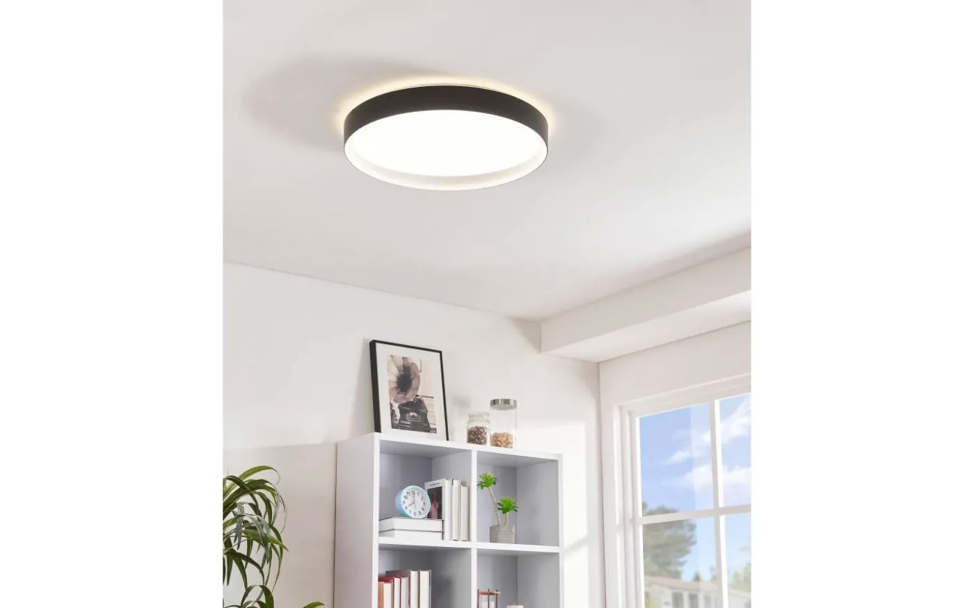 LAURITO LED-taklampa har en svart plastring med en vit inre finish. I mitten av designen finns en oval ljuspanel av vit plast. De integrerade lysdioderna ger ett behagligt ljus som kan justeras efter behov. Du kan välja mellan varmvitt, neutralvitt och kallvitt ljus. Produkten är styrbar med hjälp av den medföljande fjärrkontrollen, som erbjuder andra funktioner som dimning och nattlampa. Med denna enkla design kan den klassiska taklampan integreras i nästan vilken inredningsstil som helst och ger en välkomnande belysning i alla hem.