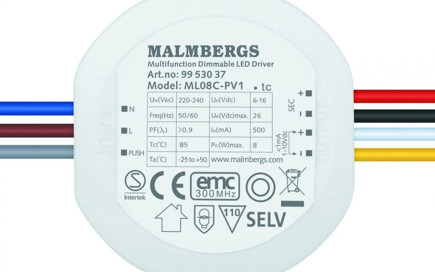 Dimbart LED-drivdon. Ljusregleringen 5-100% med tryckströmbrytare eller 1-10V signal. Upp till 15st drivdon kan anslutas till samma tryckströmbrytare. Ingen synkkabel behövs mellan drivdonen. För montering i apparatdosa. 220-240V, 50/60Hz.