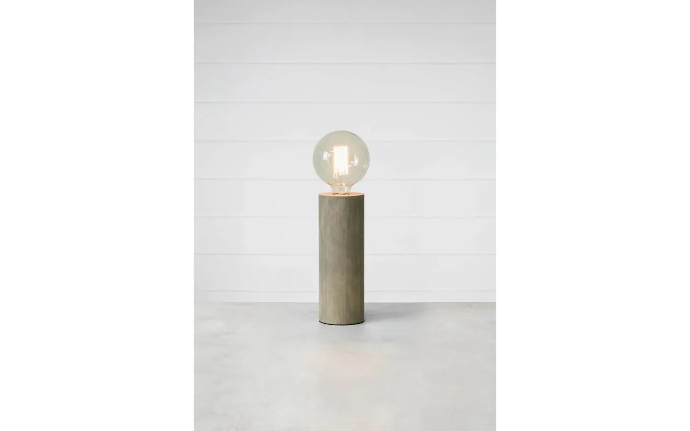 Enkel och stilren bordslampa med lampfot i gråbetsad trä. Lampan kombinerar en varm och rustik stil med enkel skandinavisk form. Välj till en dekorativ ljuskälla för att få en unik look. Den nätta storleken gör Legna lätt att placera på t.ex. fönsterbrädan. Lampans fot har en diameter om 10cm och en totalhöjd om 28 cm exklusive ljuskälla. Finns även i lägre variant om 20 cm.