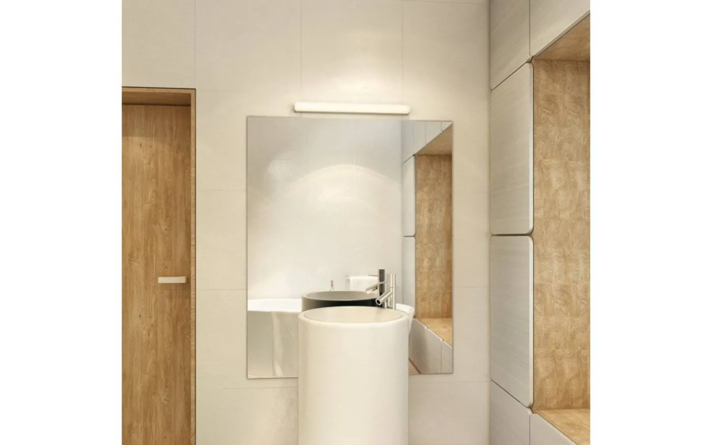 Linjär vägglampa med inbyggd LED, lämplig för våtutrymmen.