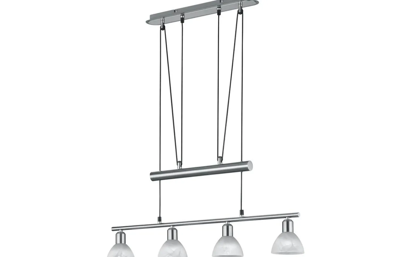 LEVISTO pendellampa skapar en mysig atmosfär och erbjuder samtidigt funktionalitet. Tack vare yoyo-pendeln kan armaturen varieras mellan en höjd på 95 cm och 160 cm. Denna funktion ger dig möjlighet att justera armaturen efter dina behov och säkerställa optimal belysning. Lampan är idealisk för att belysa matplatsen. Den har en bredd på 80 cm och ett djup på 11 cm. Den matta nickelfärgen i kombination med det alabasterfärgade glaset ger lampan en sofistikerad touch och kan kombineras med både moderna och klassiska inredningsstilar. Dessutom har armaturerna modern LED-teknik, vilket står för hög ljuskvalitet. LED-ljuskällor kännetecknas av lång livslängd och låg värmeutveckling. Ljuskälla: inklusive 4x E14 LED, 4,9W · 4x 470lm, 3000K. Extra information: Justerbar höjd, IP20, Ej dimbar