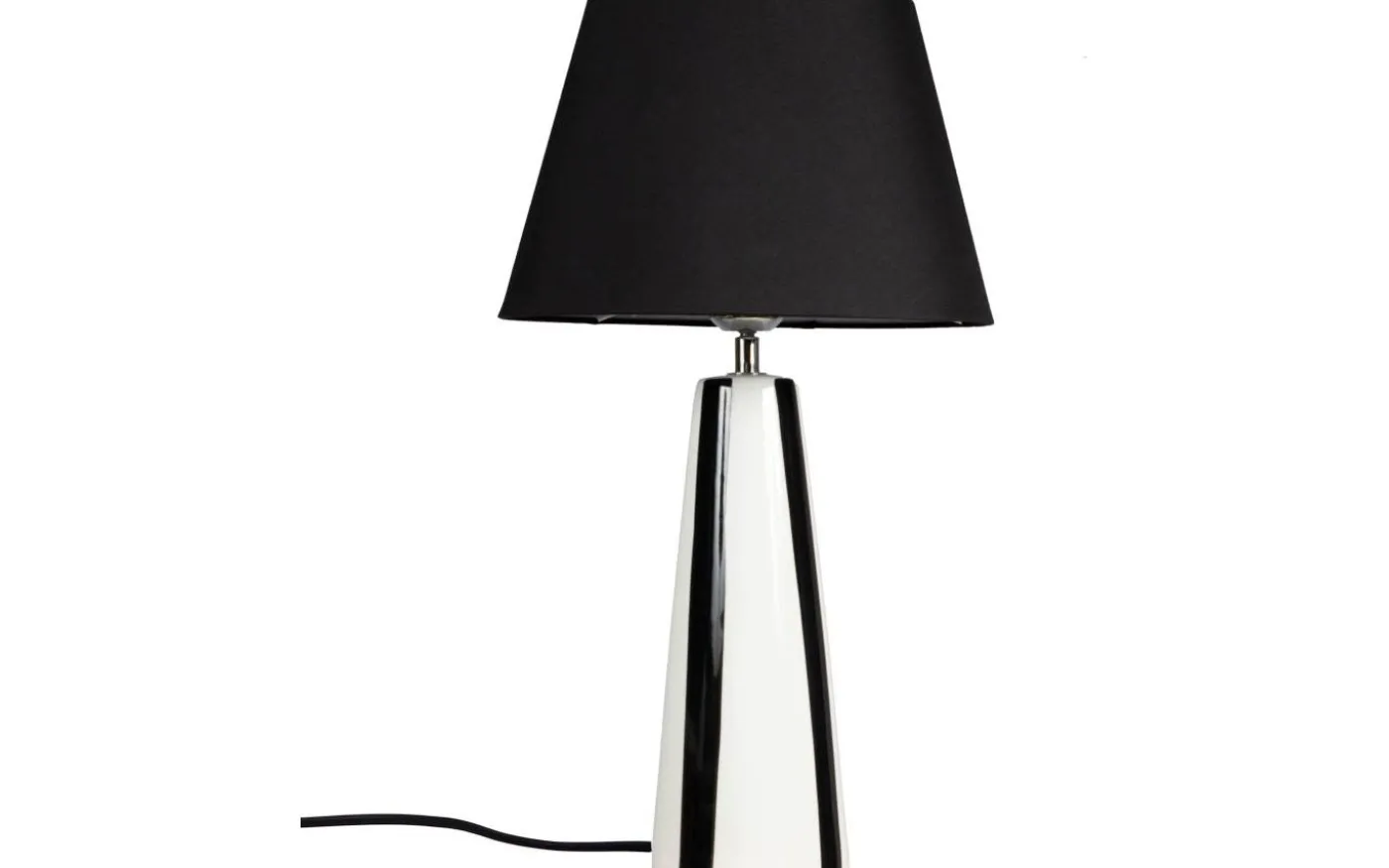 Leya från PR Home är en bordslampa i keramik med vackert randigt mönster och matchande lampskärm i textil.