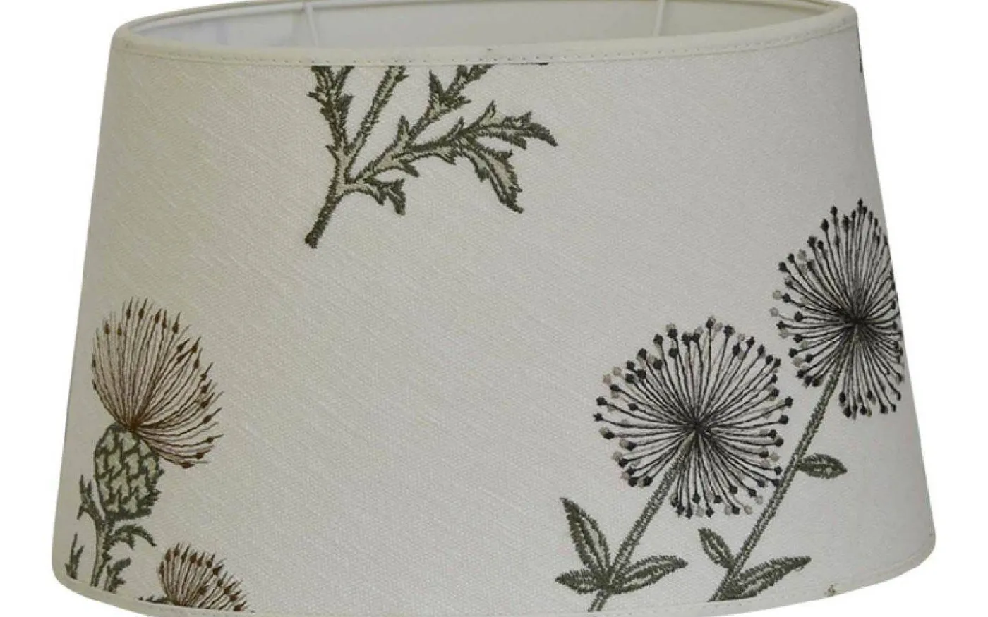 Lismore lampskärm från välkända Hallbergs Lighting of Sweden är en vacker oval lampskärm i mönstrad textil med kantband i ovan- och nederkant.