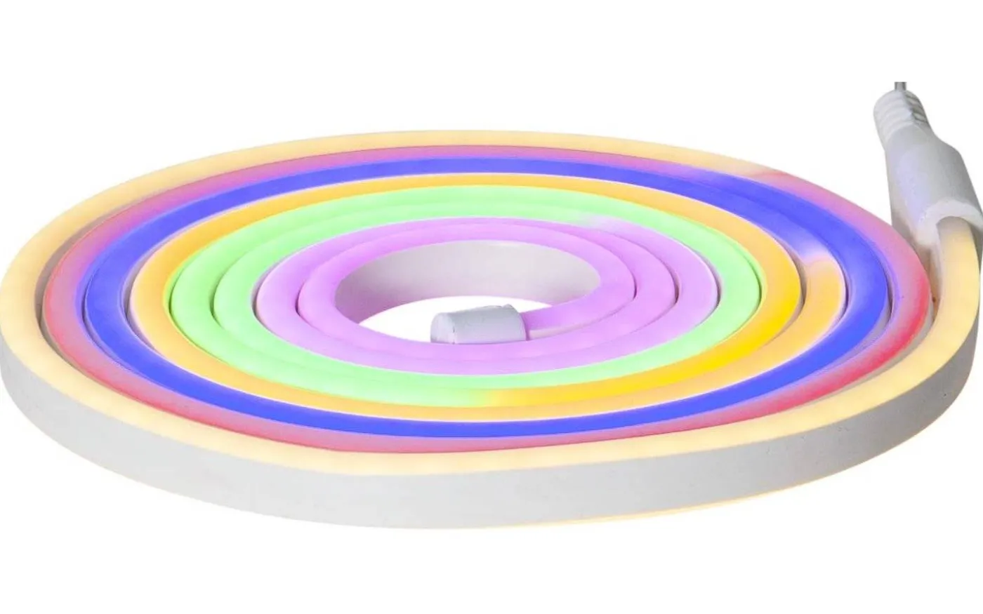Flexibel, platt neon ljusslang för dekoration. Passar för både inom- och utomhus. Slangen är 3m lång, vit och har 288 flerfärgade LED-ljuskällor. Lyser på 2 sidor.
