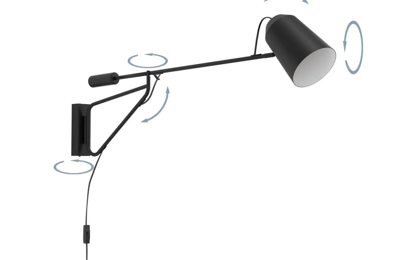 LORETO vägglampa är gjord av svart metall och har en rak justerbar arm och huvud. Den mattvita insidan av huvudet skapar utmärkt belysning, medan det justerbara ljuselementet gör att du kan accentuera enskilda delar av rummet. Vägglampan kan enkelt tändas och släckas med hjälp av in-line-strömbrytaren. Produkten har en minimalistisk design som smälter samman med moderna Scandi-interiörer och ger perfekt belysning för ditt hem.