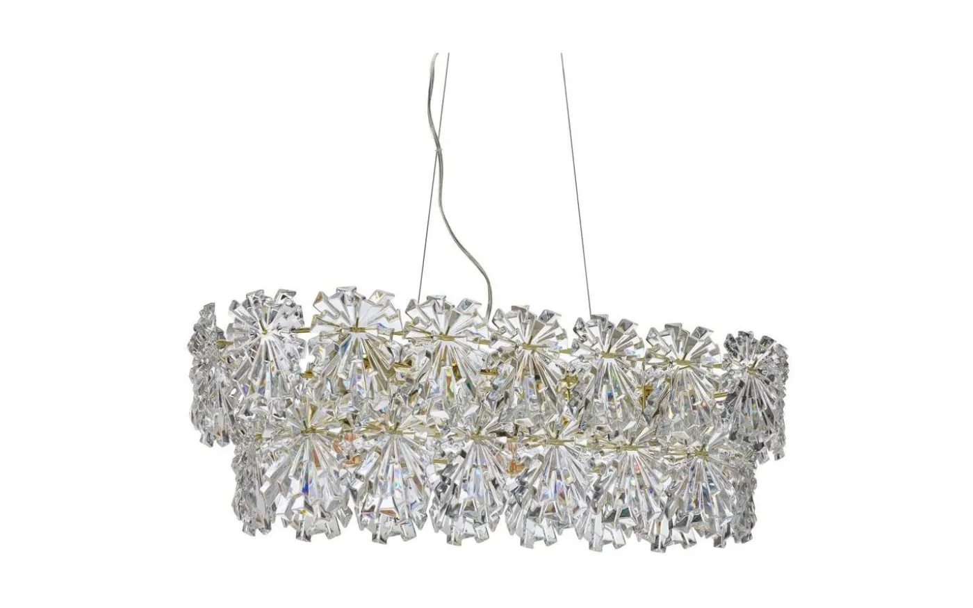 Lorraine taklampa från välkända By Rydens är en lyxig och dekorativ taklampa som ger rummet en elegant känsla. Med sin stomme i blank mässing och de vackra akrylplattorna som påminner om isiga snöflingor sprider lampan ett mjukt, behagligt ljus som vackert reflekteras mot den glänsande mässingen.