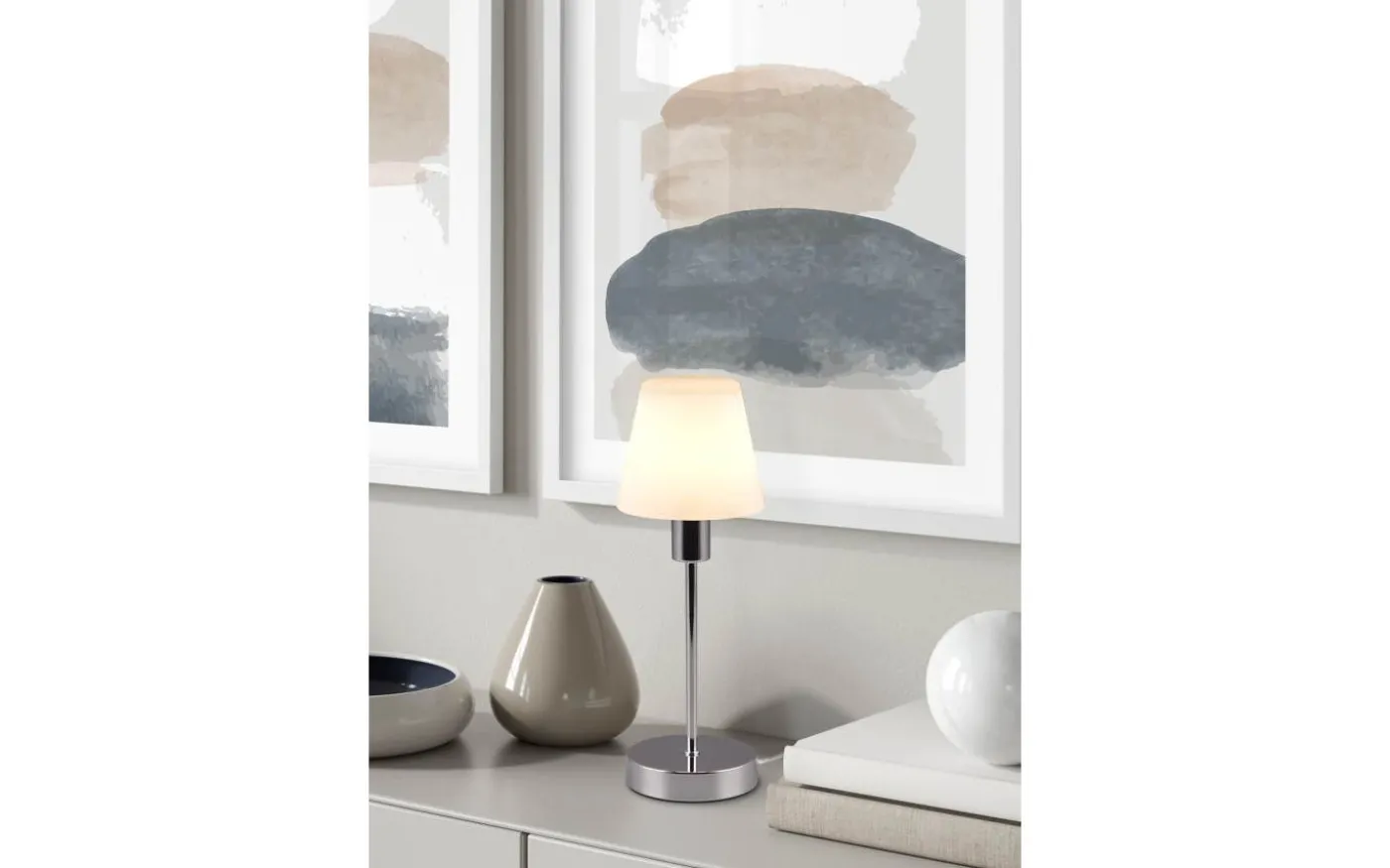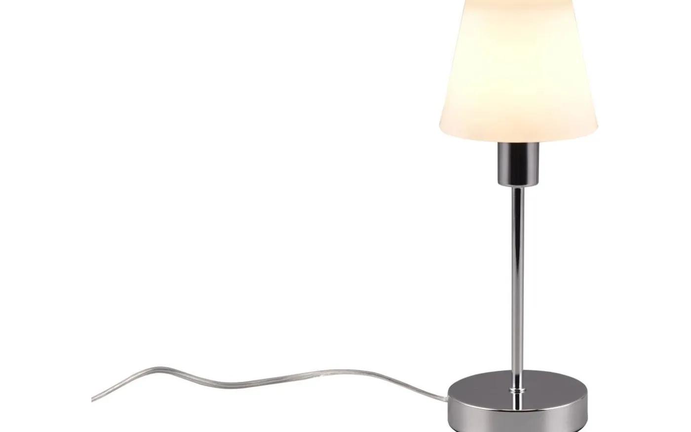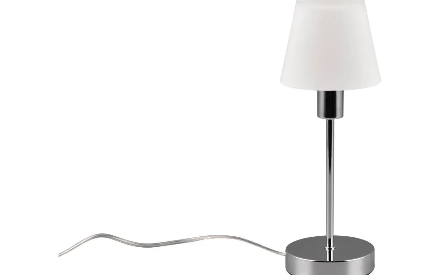 Sätt snygga accenter i belysningen med bordslampan LUIS II. Utrustad med en touchfunktion kan du tända och släcka ljuset med beröring. Bordslampan ser bra ut på ett bord eller en byrå i ditt vardagsrum, arbetsrum eller hall. Den rena, diskreta designen består av en kromad bas och en elegant vit lampskärm. För modern och pålitlig belysning rekommenderas en LED-lampa. Den erbjuder hög ljuskvalitet, är mångsidig och övertygar med jämn belysning. Dess långa livslängd och låga värmeutveckling gör den till det perfekta valet för en mängd olika användningsområden. Ljuskälla: exklusivt 1x E14 · max. 40W. Extra information: IP20, Lampa(or) ingår ej, Ej dimbar, På/Av-pekfunktion