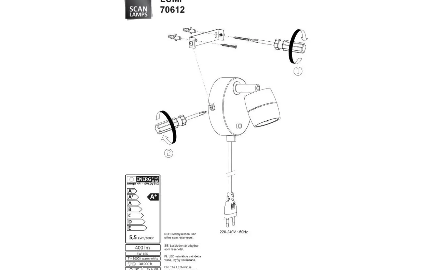 Lumi vägglampa från Aneta är en stilren vägglampa med justerbart lamphuvud som gör det enkelt att rikta ljuset dit du vill.