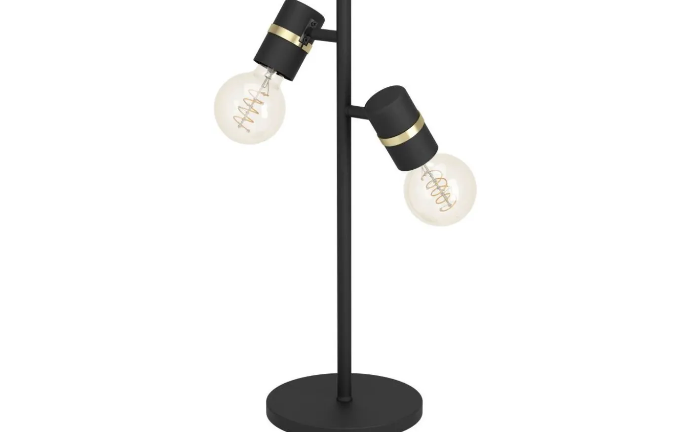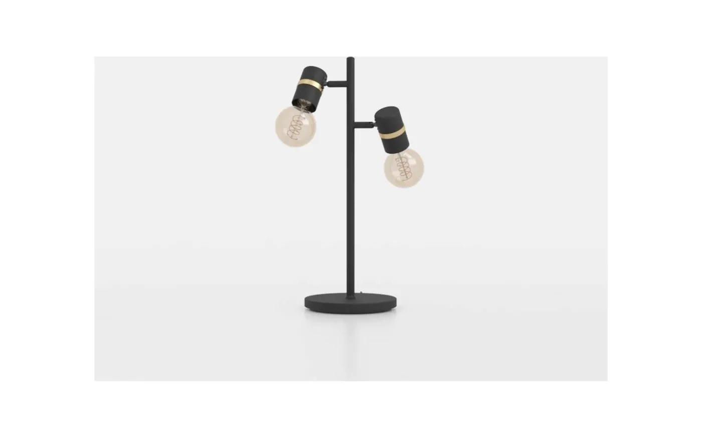 Den här är en Lurone bordslampa som har en höjd av 50 cm och presenterar en modern design med två ljuskällor i olika höjder för en dynamisk och funktionell belysning. Dess svarta finish med eleganta guldaccentringar ger en sofistikerad touch, vilket gör lampan till ett attraktivt tillskott i en rad olika inredningsstilar. Designen är praktisk och trendig, vilket gör den lämplig för användning på skrivbord, sängbord eller som en dekorativ belysning i vardagsrum.