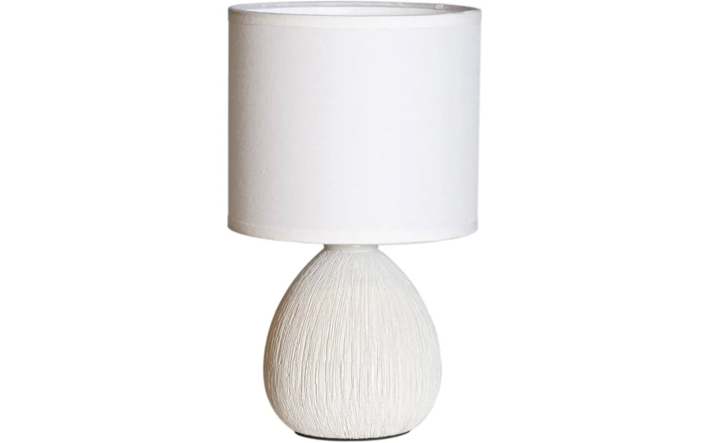 Madison från Cottex är en liten och lättplacerad bordslampa med lampfot i keramik och lampskärm i linne. Lampskärmen har en diameter på 15 cm.